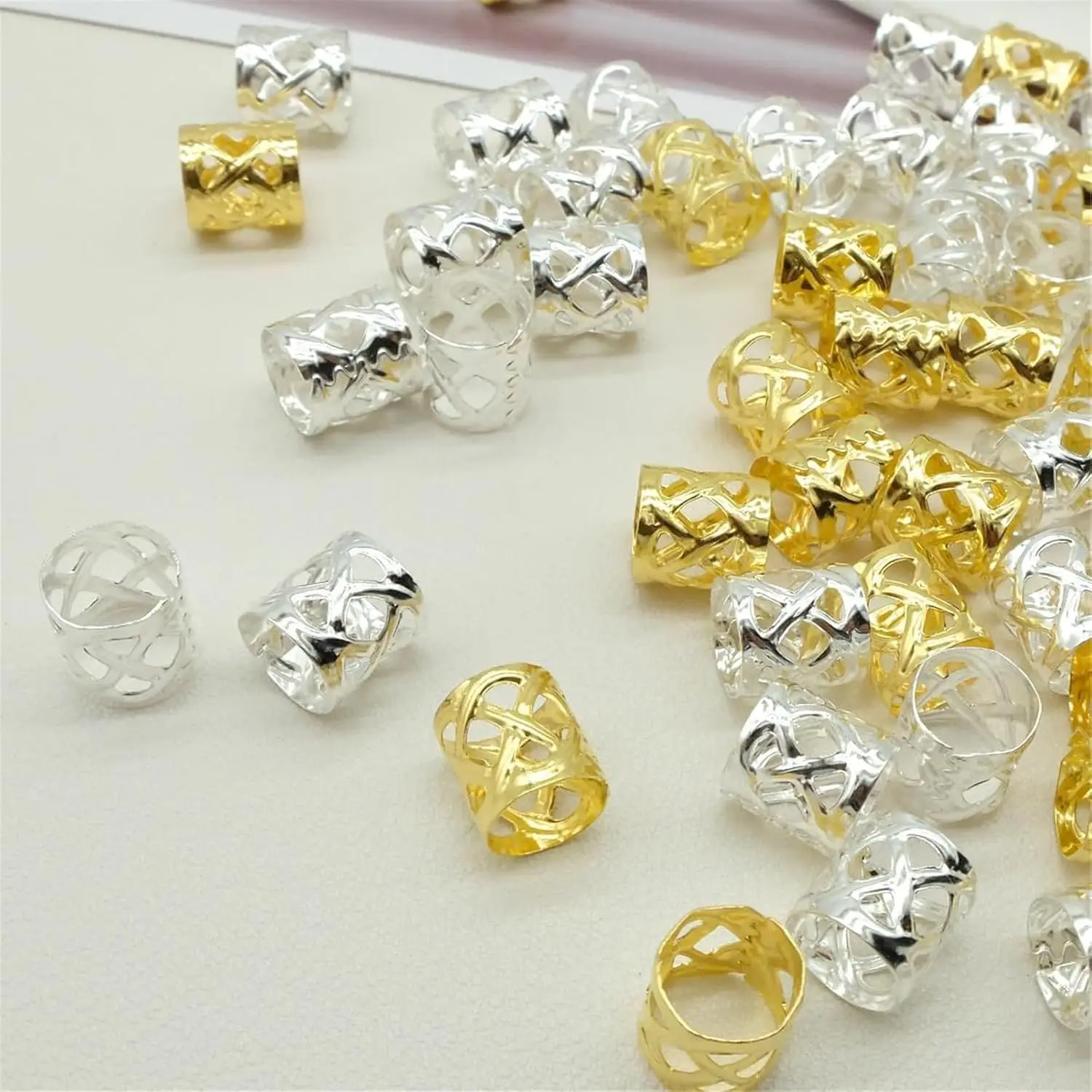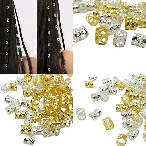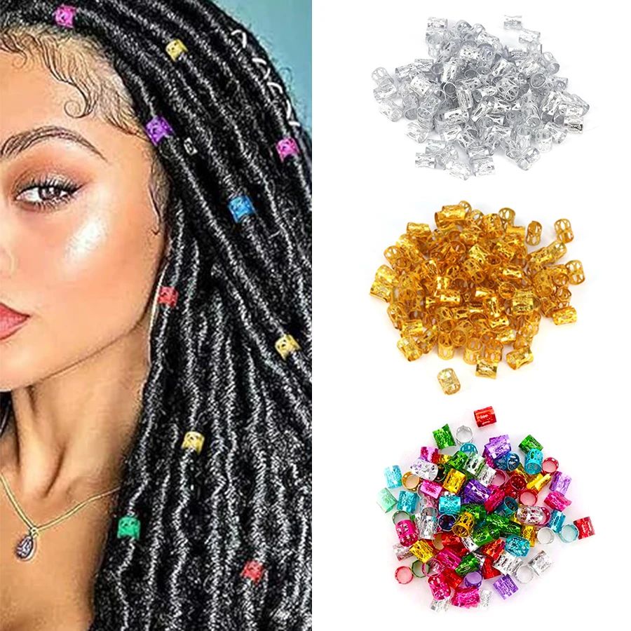 100pcs Hollow Out Hair Ring,Dreadlocks Beads Hair BraidRings Clips Dread Locks Hair Braiding Metal CuffsDecoration/Accessories