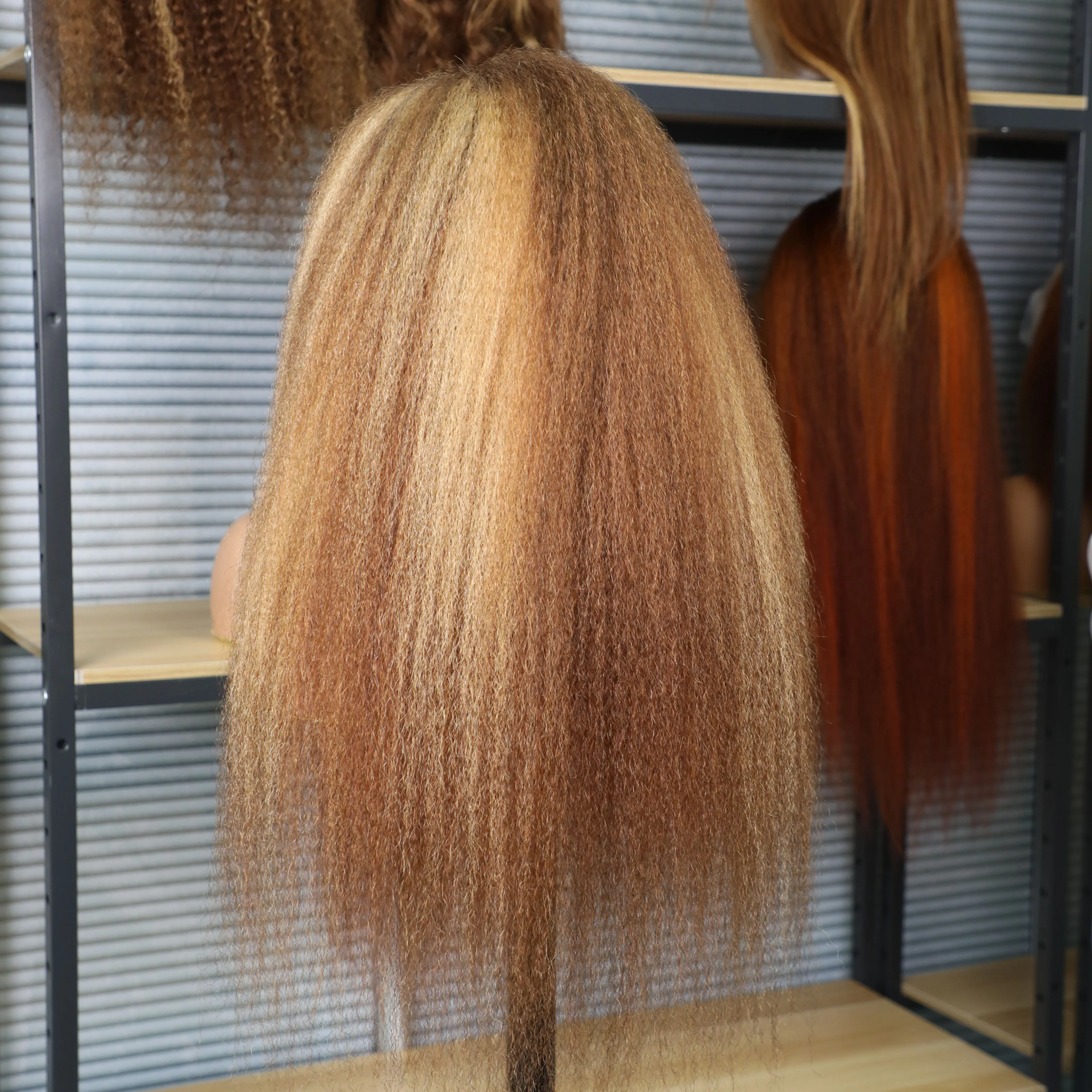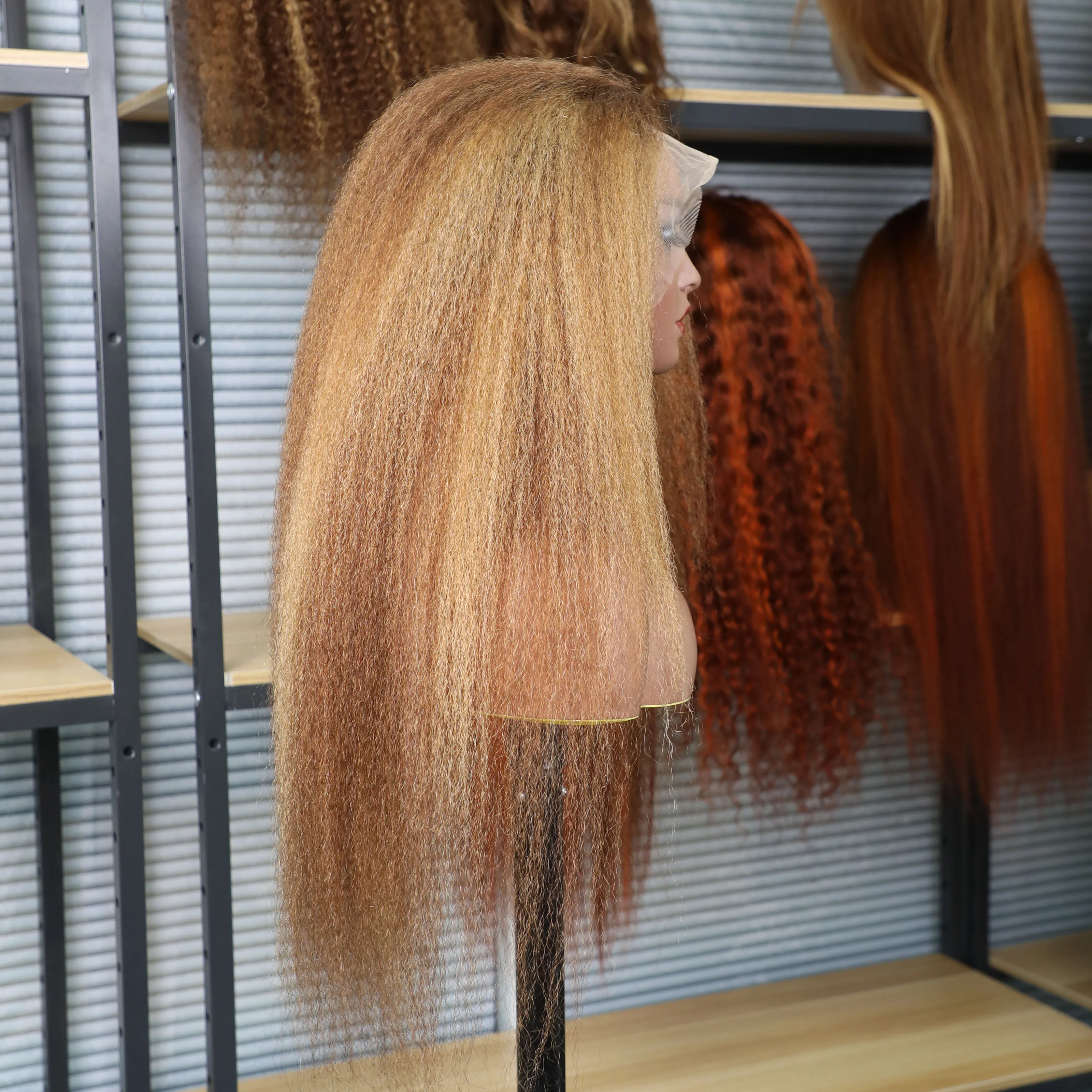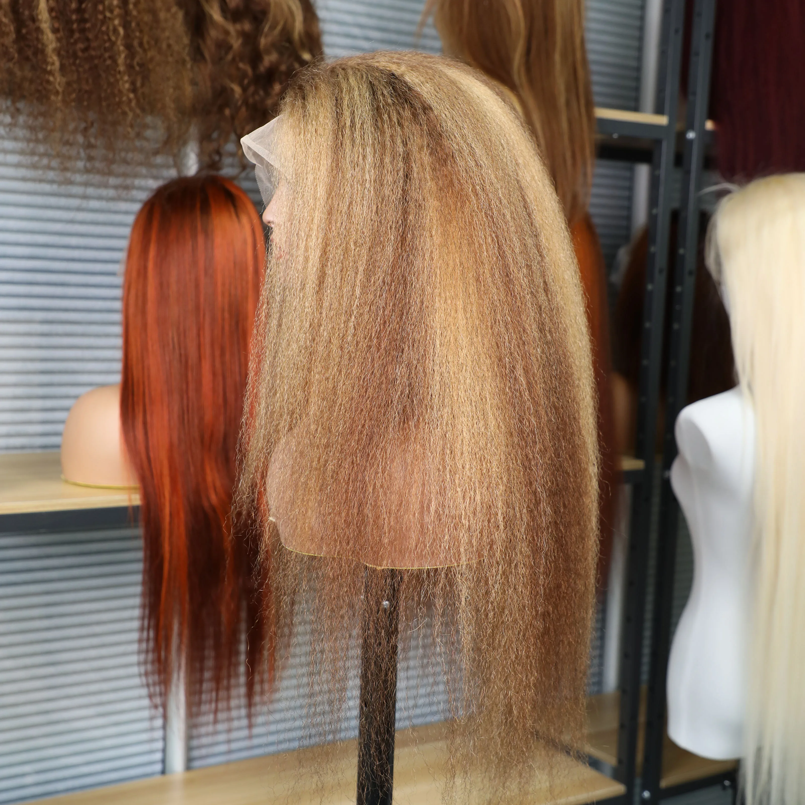 4/27 Kinky Straight 13x6 Lace Frontal Human Hair Wigs For Women Blonde Brown Piano Color 13x4 Lace Front Wig PrePlucked Yaki Wig