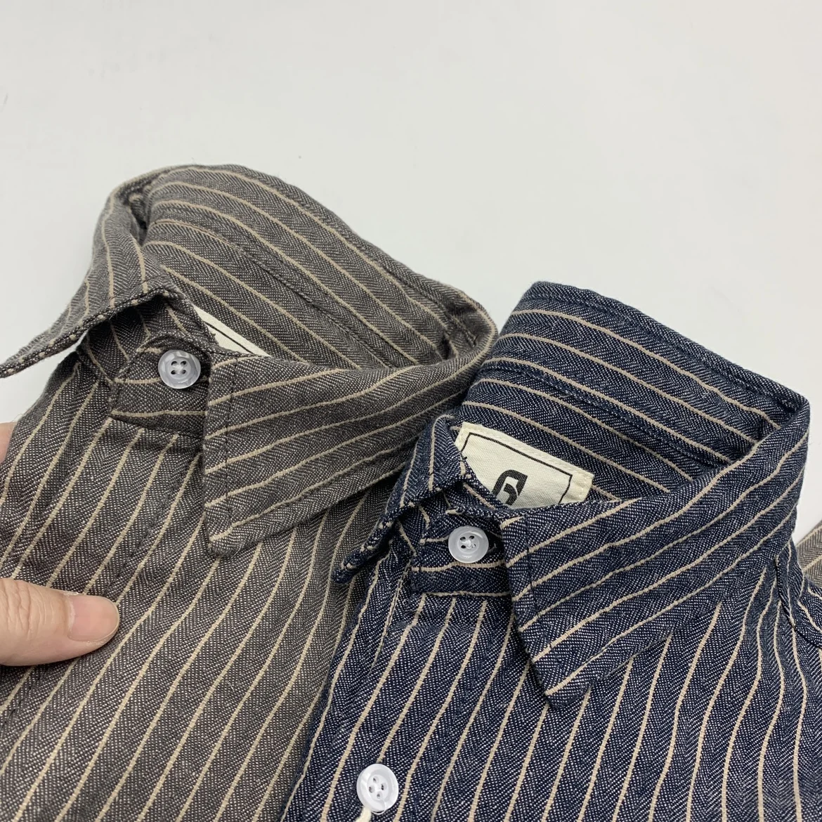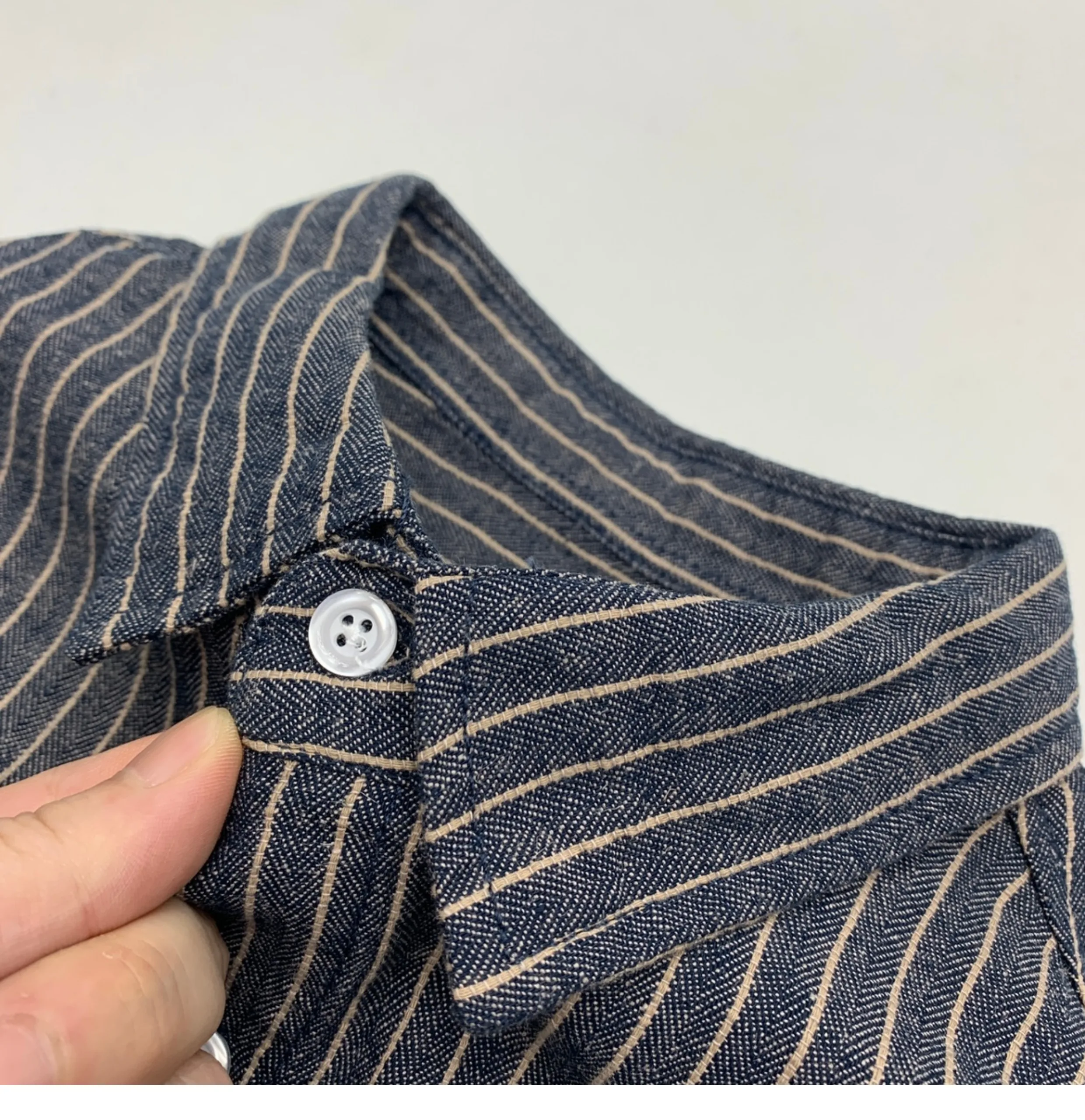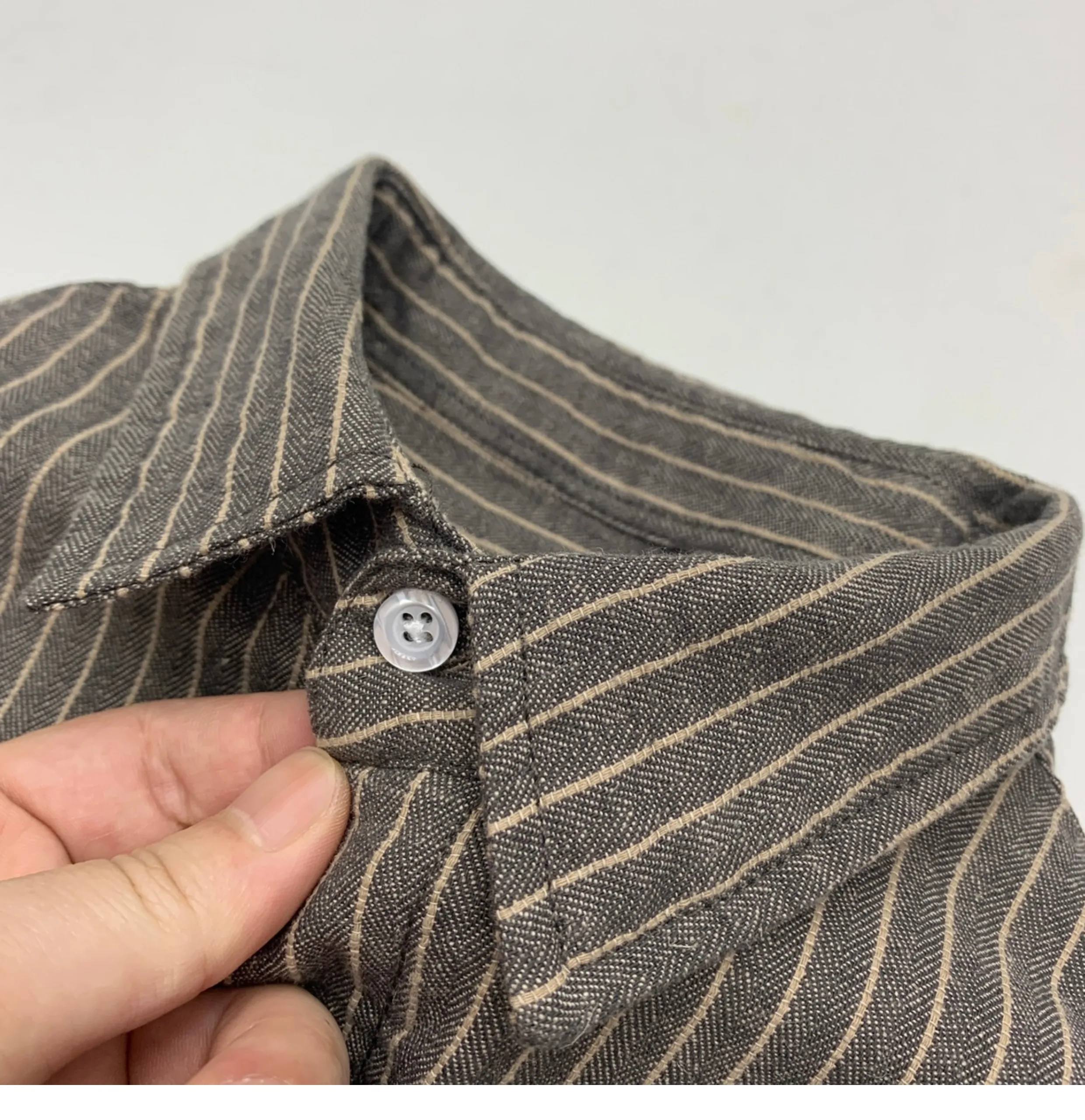 55% Linen 45% Cotton Vintage Striped Shirts for Men American Casual Retro Loose Blouses 2024 Spring Autumn Long Sleeve Male Tops