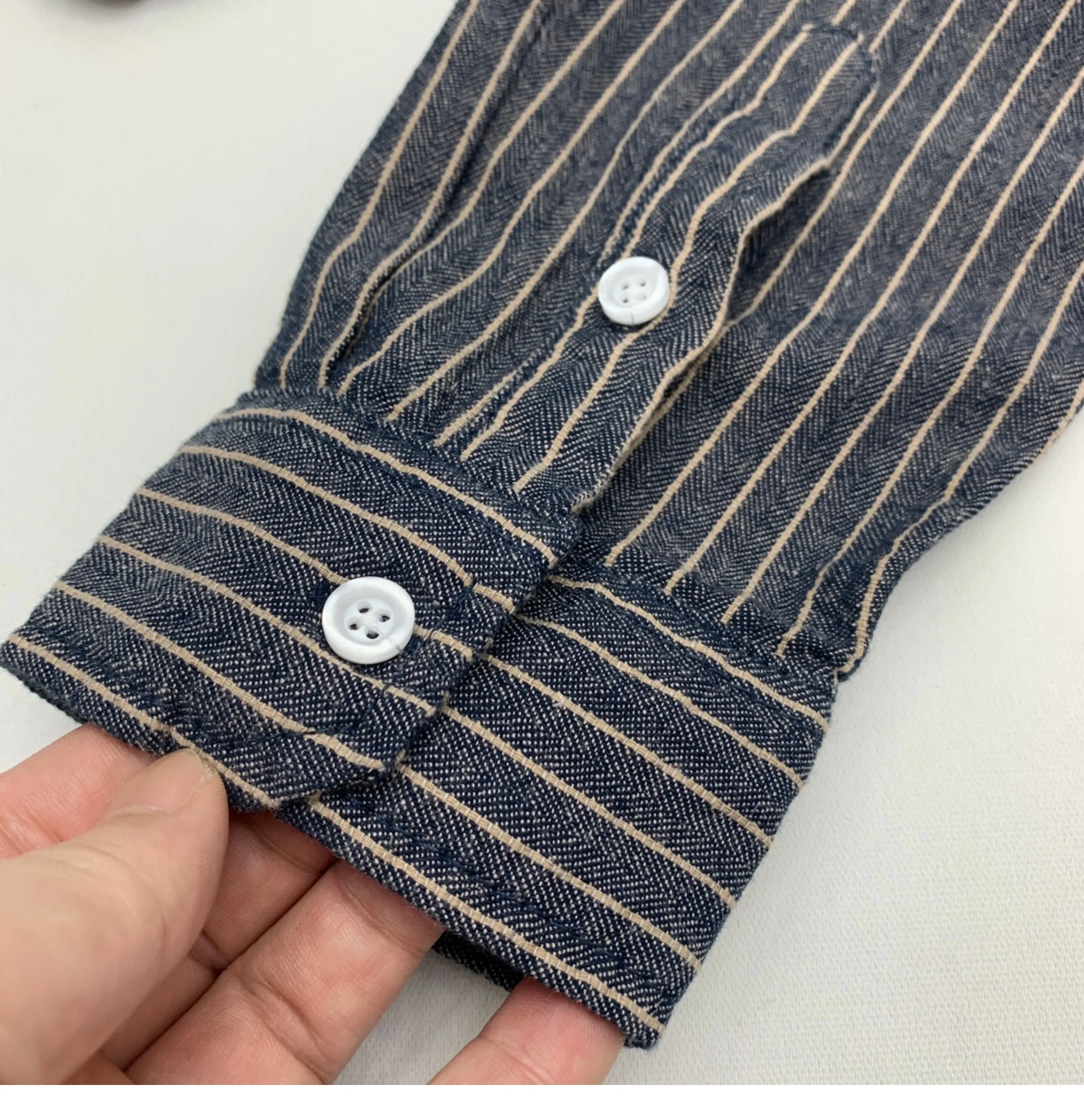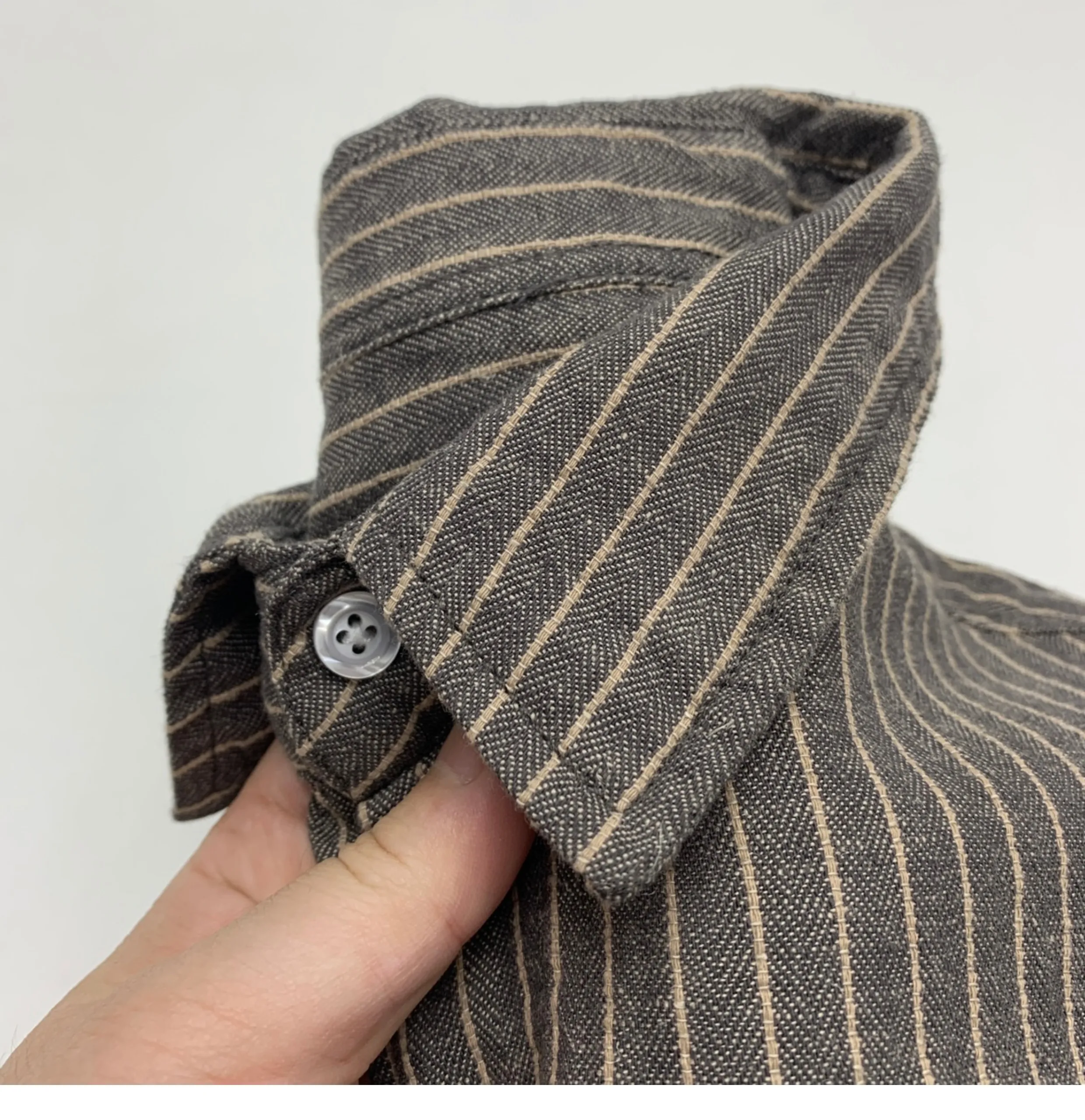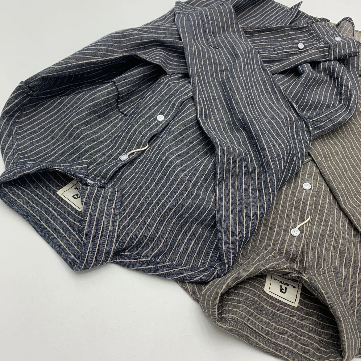 55% Linen 45% Cotton Vintage Striped Shirts for Men American Casual Retro Loose Blouses 2024 Spring Autumn Long Sleeve Male Tops