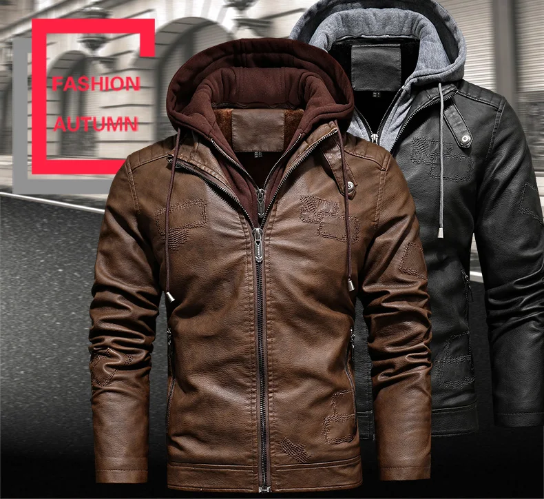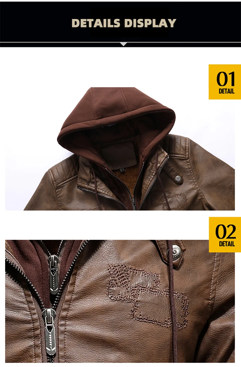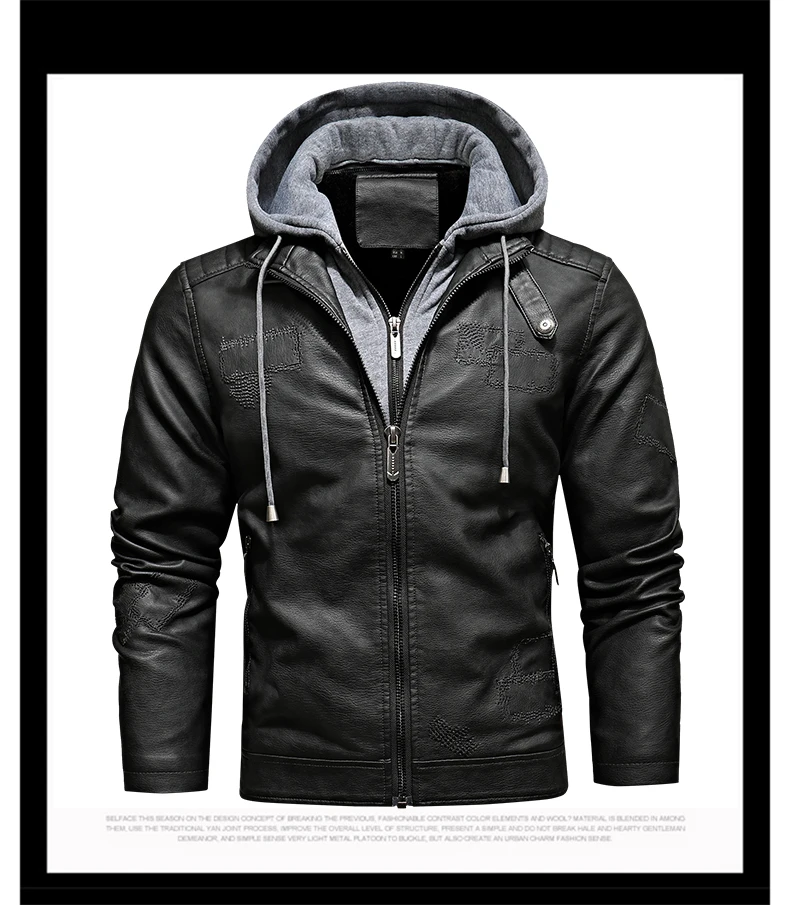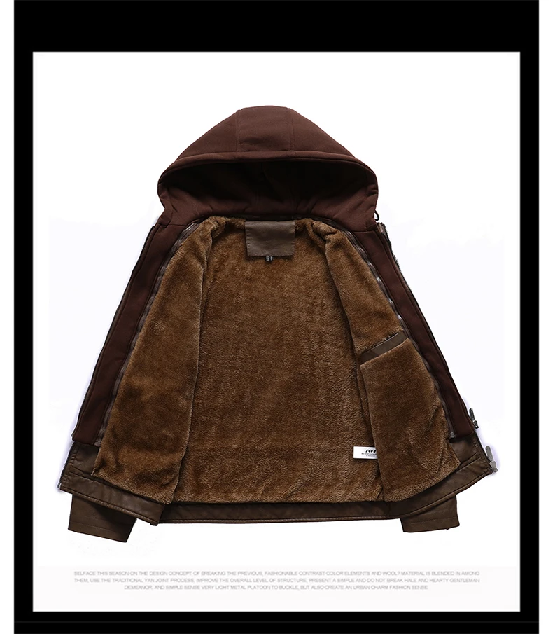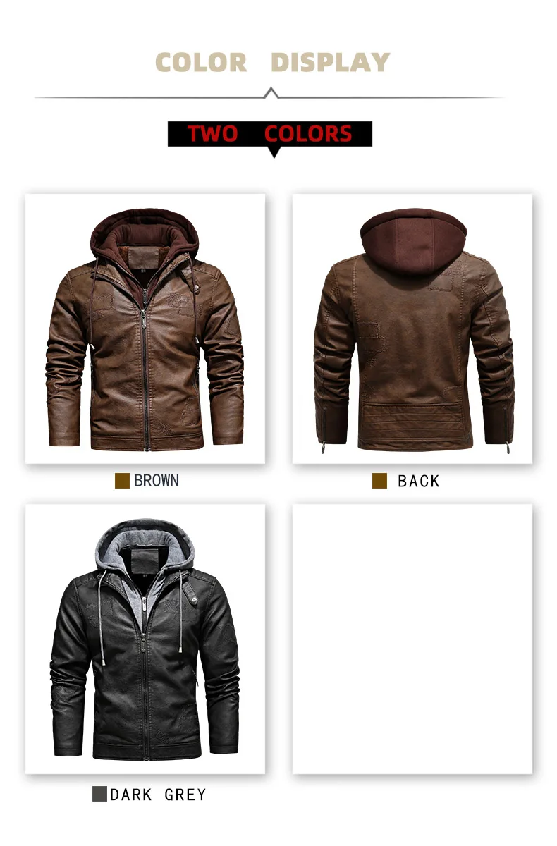 Autumn/Winter Men's fake two PU leather retro detachable hooded jacket coats
