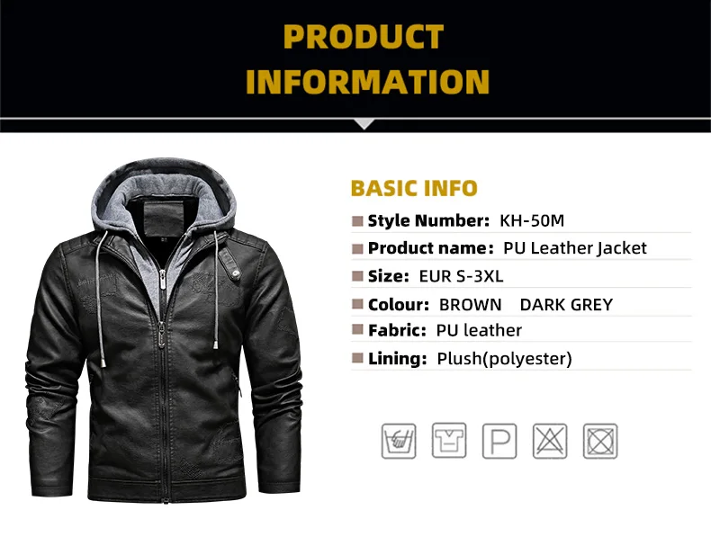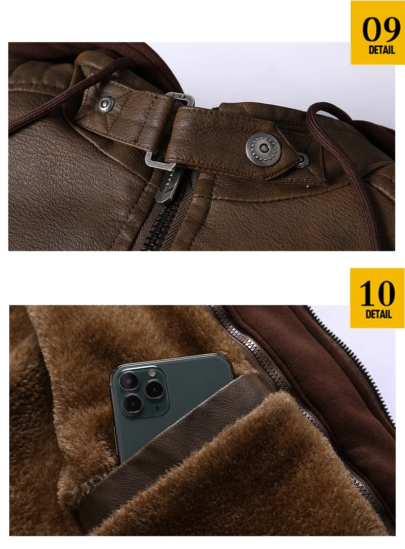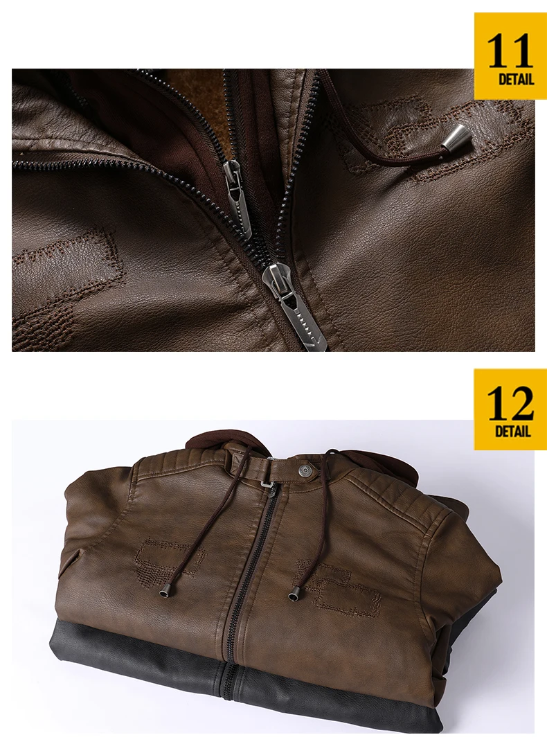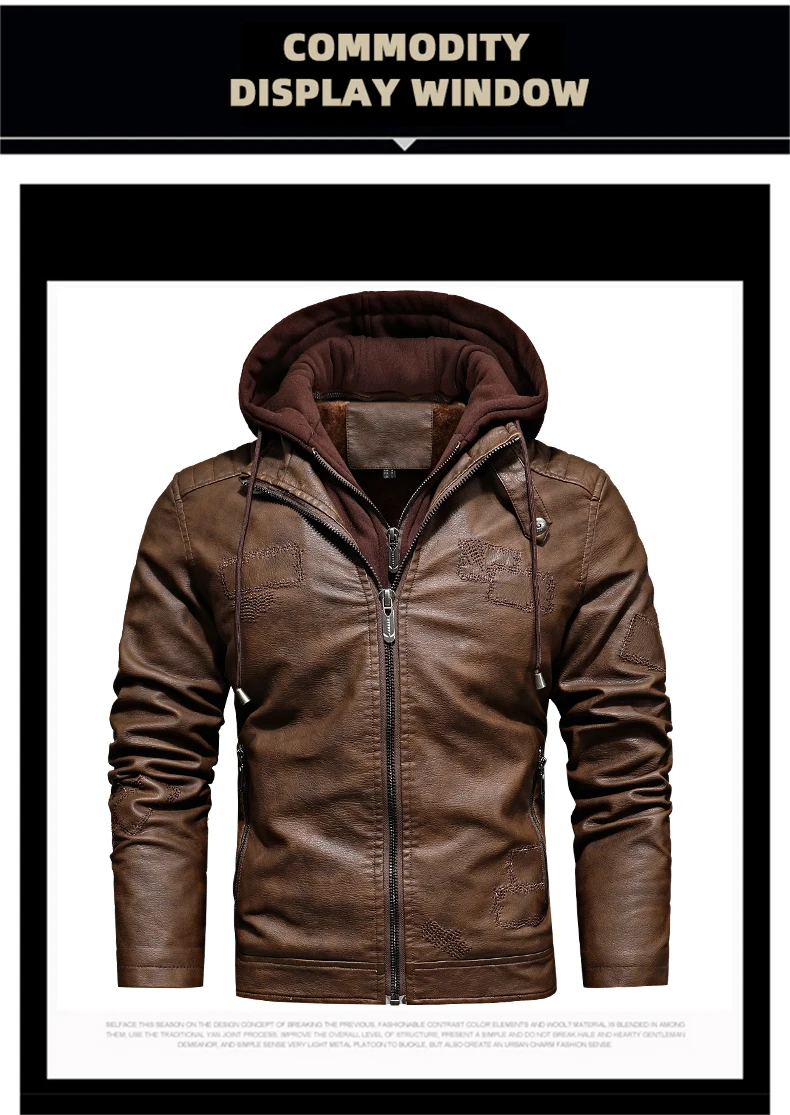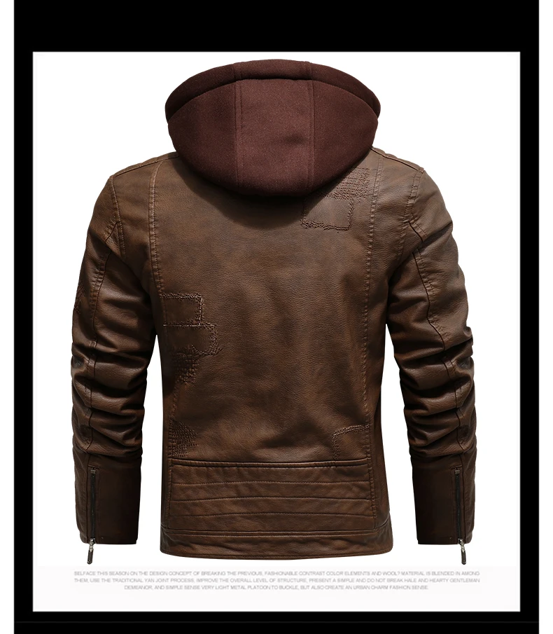 Autumn/Winter Men's fake two PU leather retro detachable hooded jacket coats