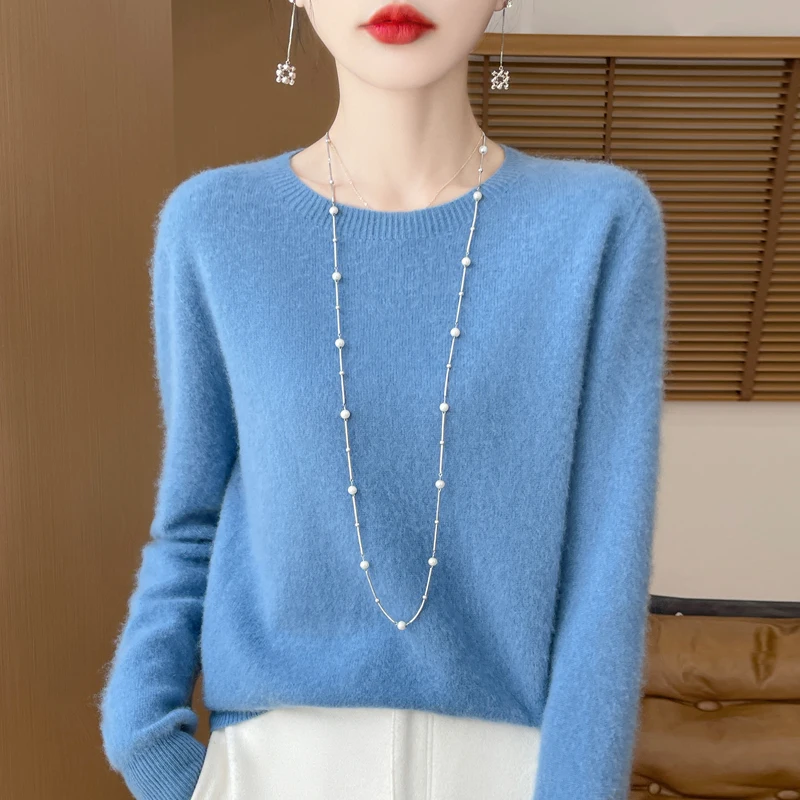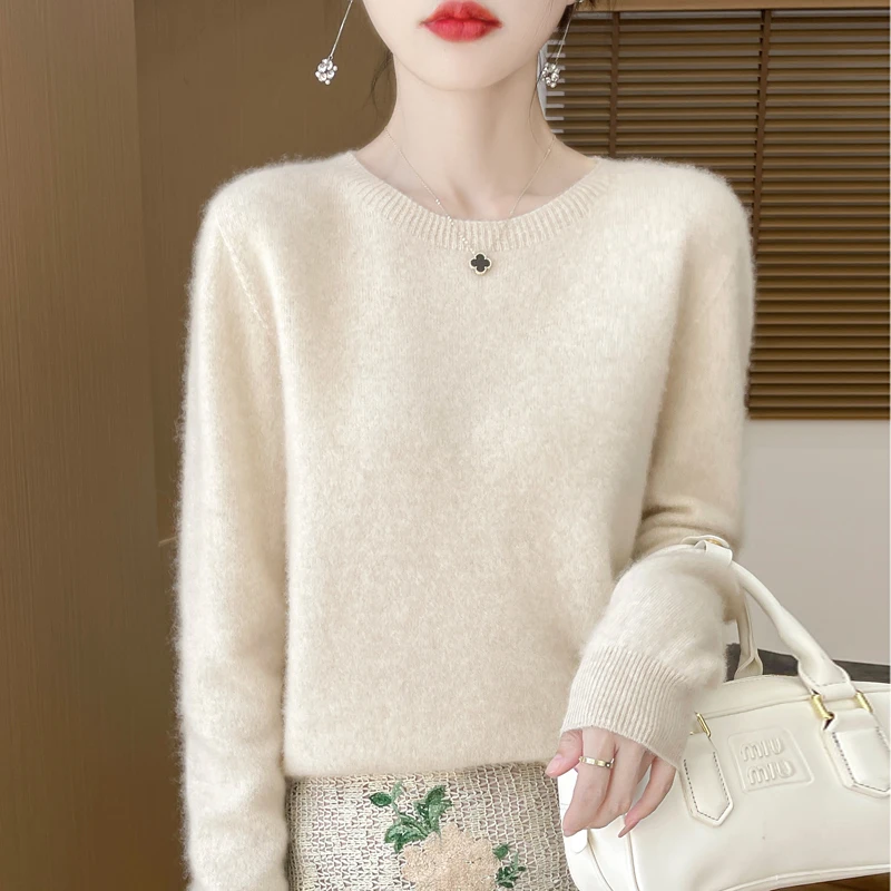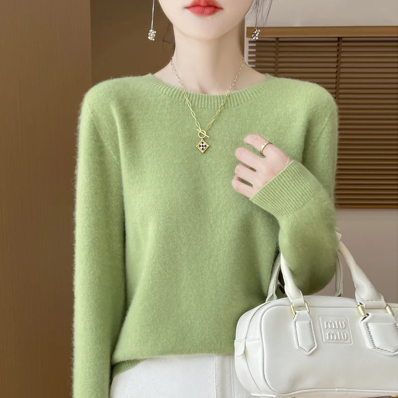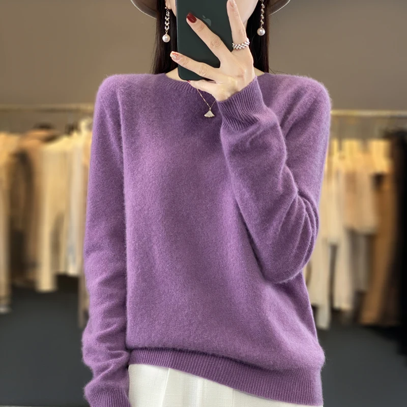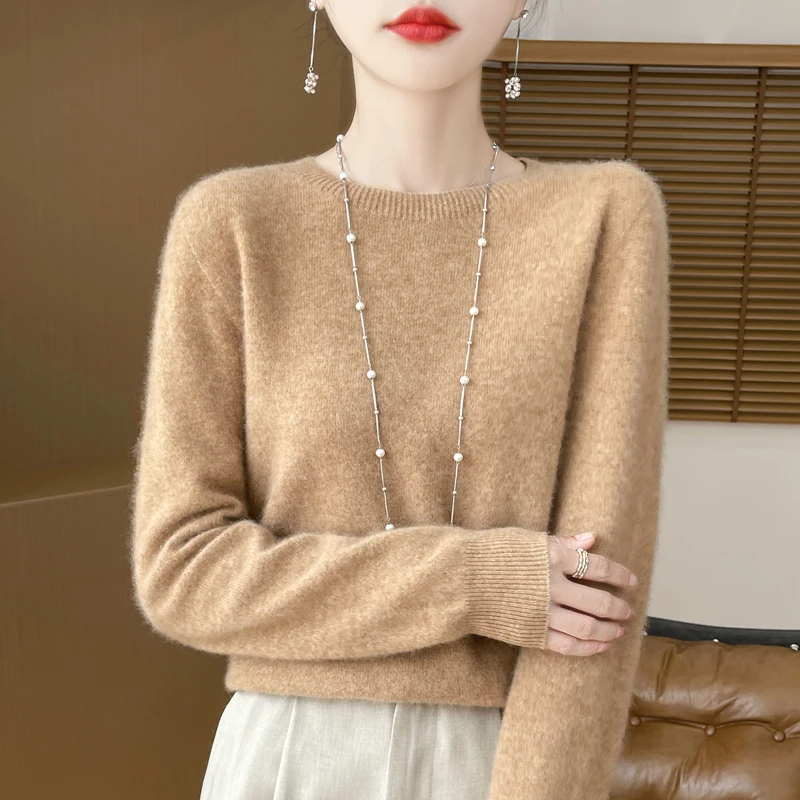 Autumn Winter Women 100% Merino Wool Sweater O-Neck Cashmere Pullover Basic Fashion Clothing Comfort Warm Top Casual Solid