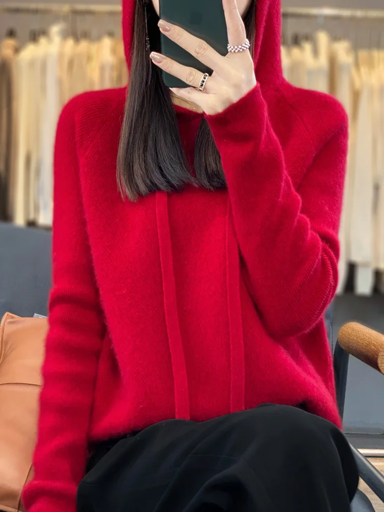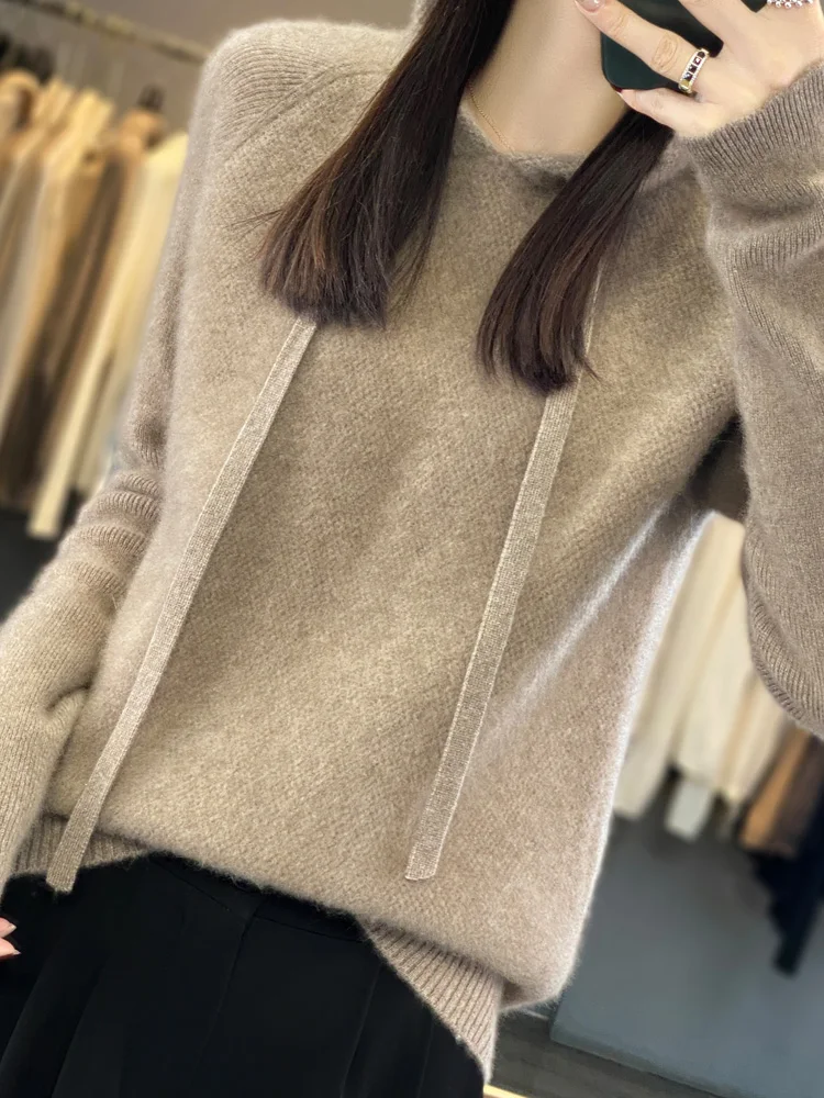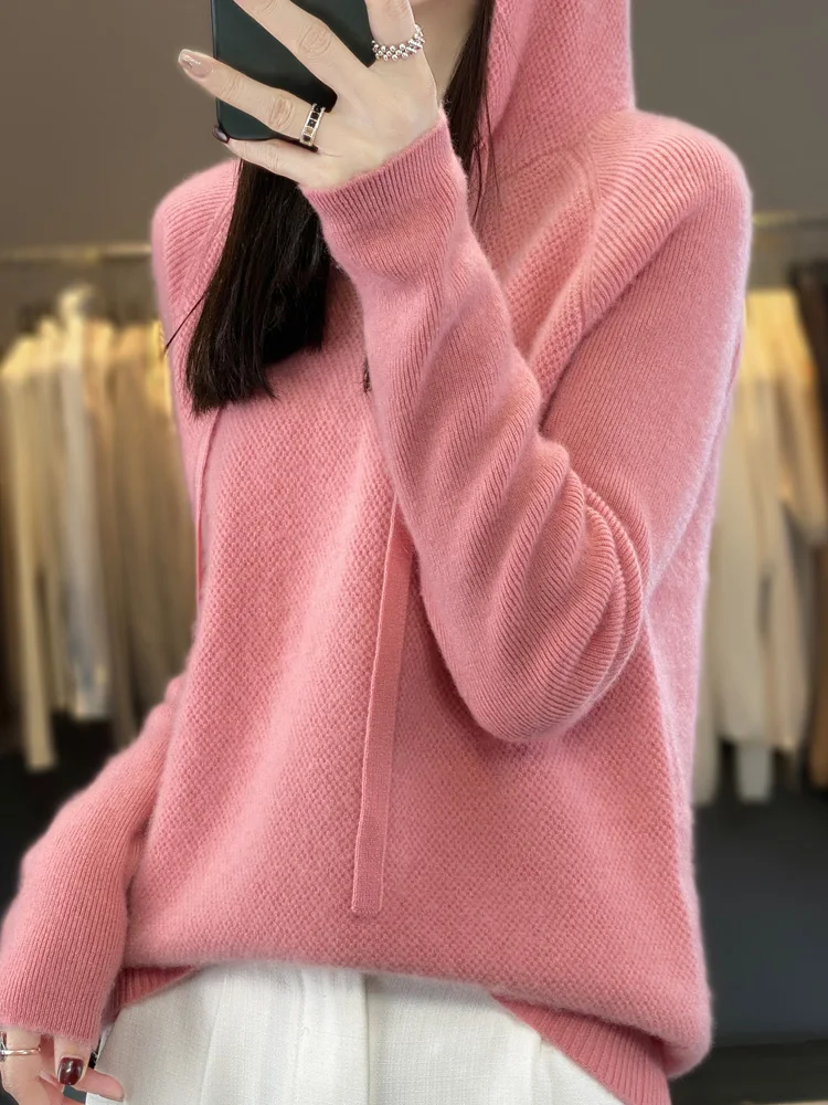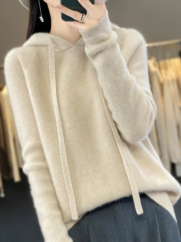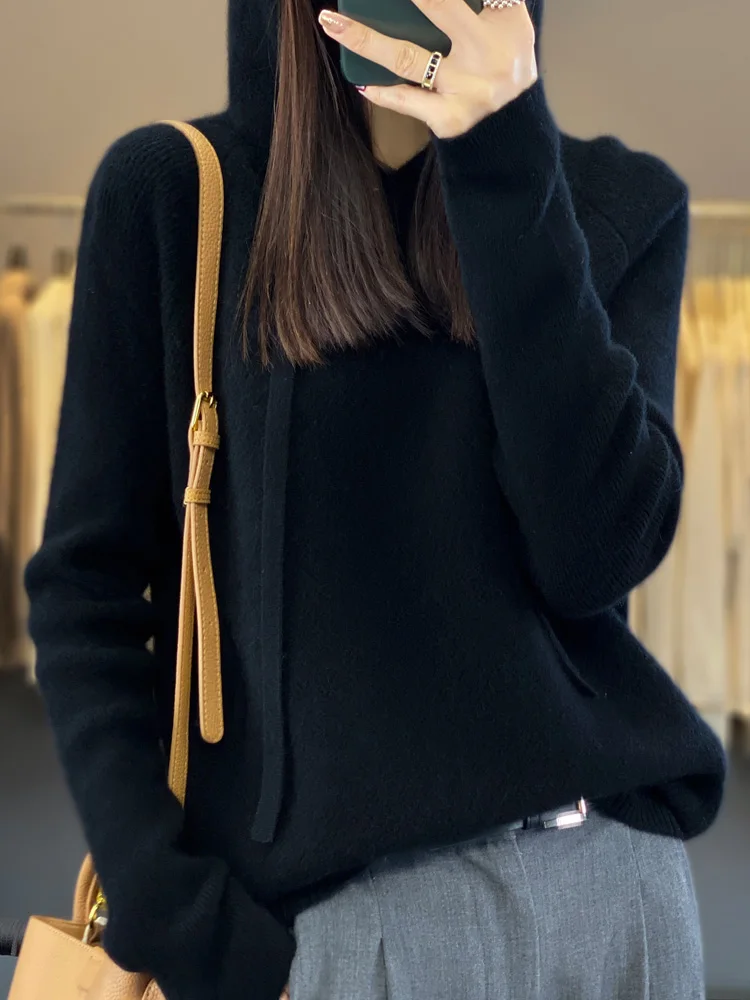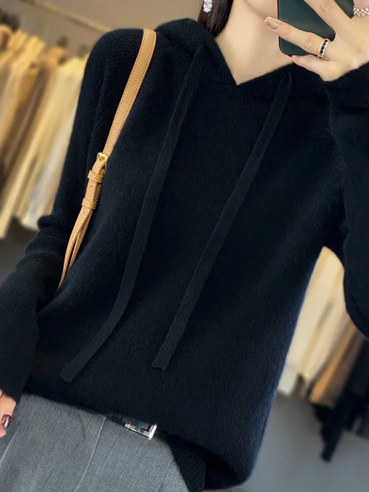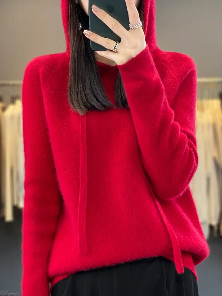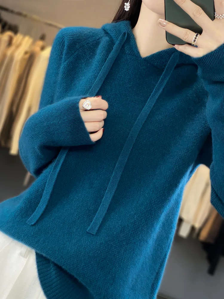 Autumn Winter Women's Cashmere Hooded Pullover Thick Sweater Raglan Sleeve 100% Merino Wool Knitwear Warm Casual Comfortable Top