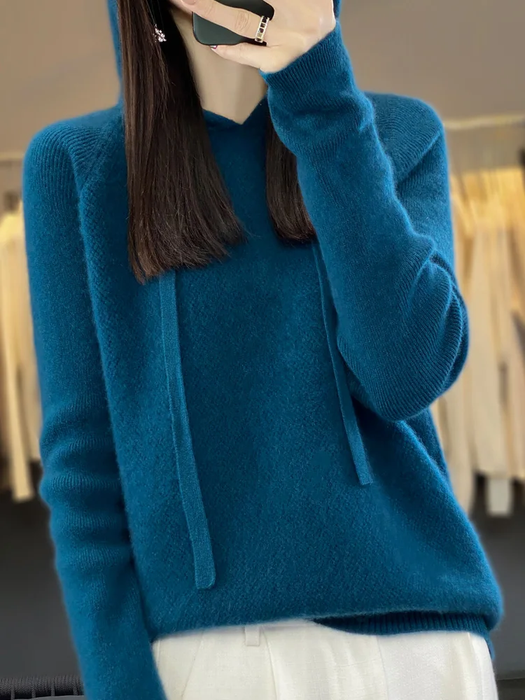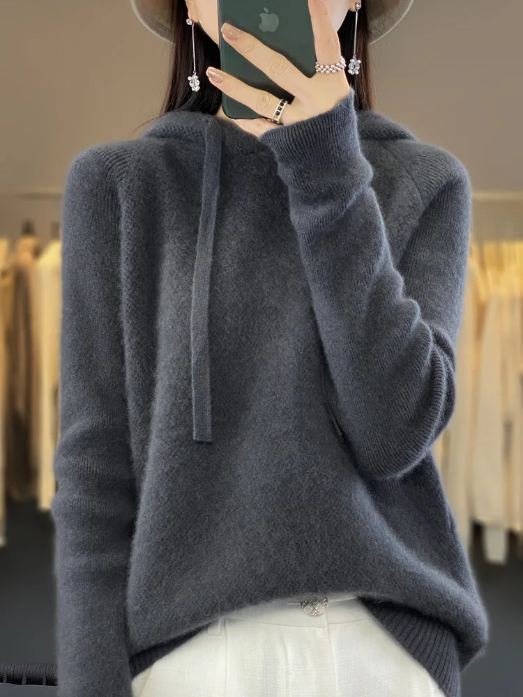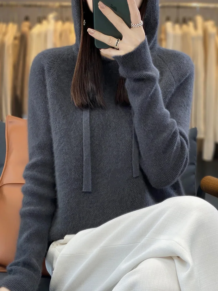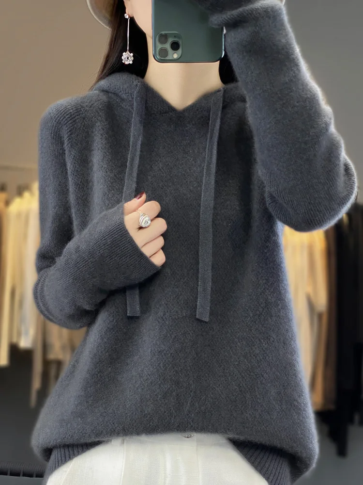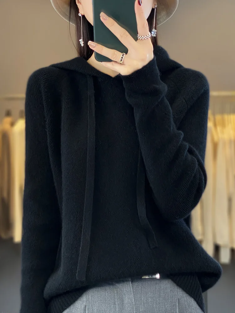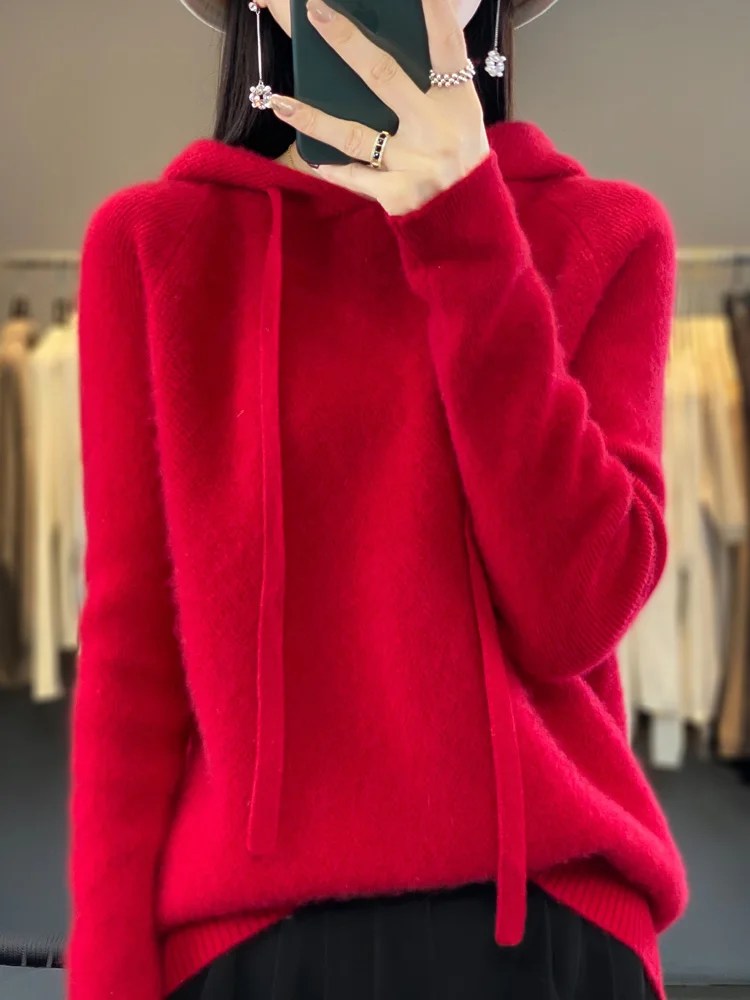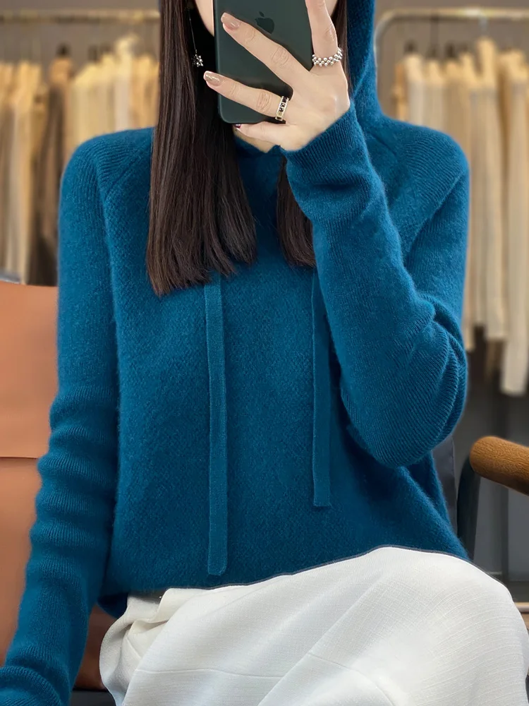 Autumn Winter Women's Cashmere Hooded Pullover Thick Sweater Raglan Sleeve 100% Merino Wool Knitwear Warm Casual Comfortable Top