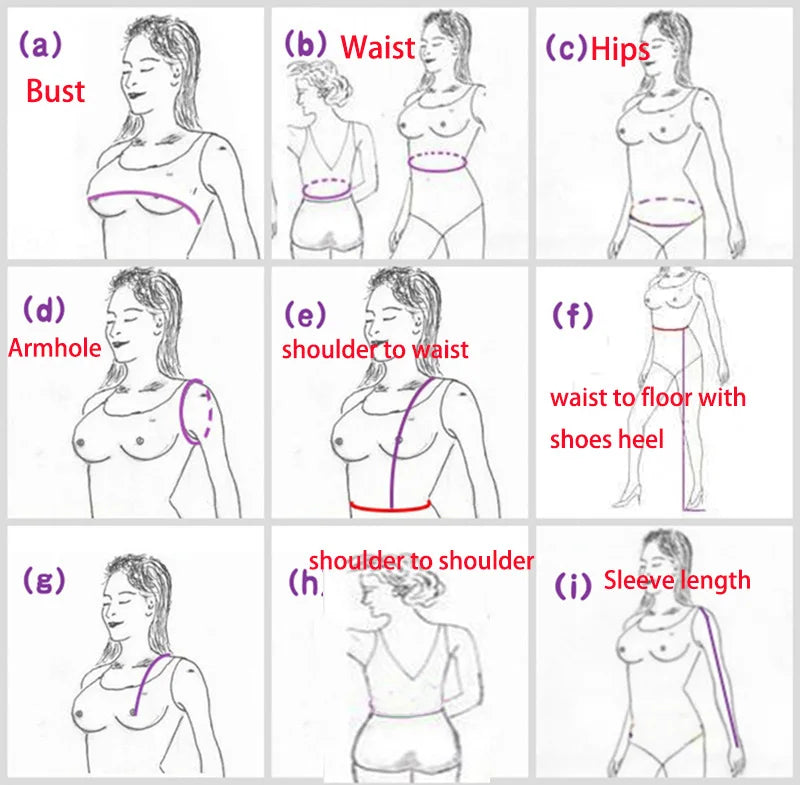 If you think my standard size not fitting your dress ,you can measure yourself :