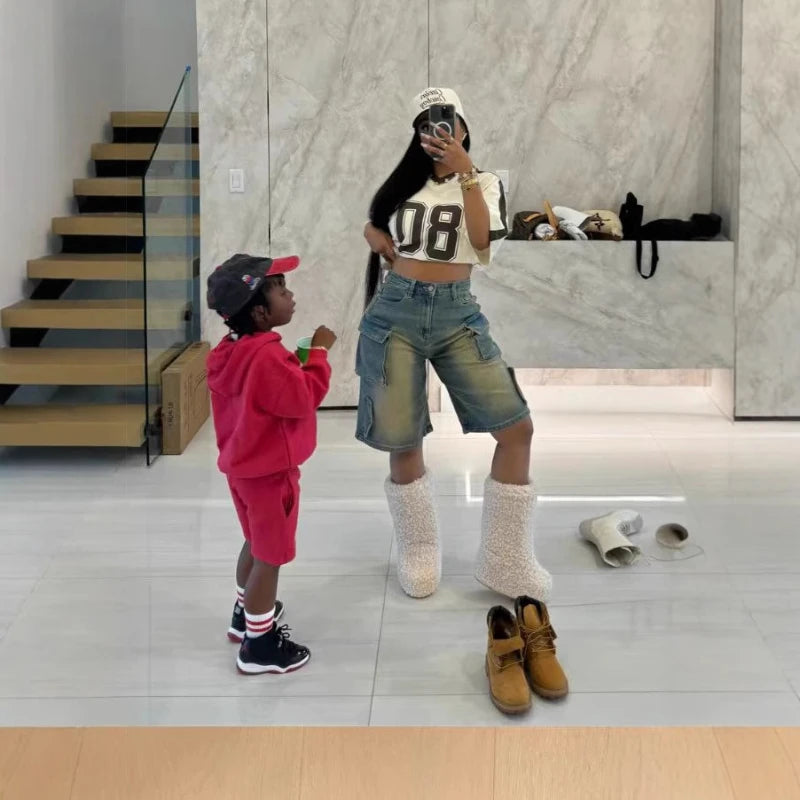 Denim Pant Women Short Jeans Shorts Pants Slim Mom Jeans High Waist Straight Trousers Y2k Streetwear Splice Pockets Casual Punk