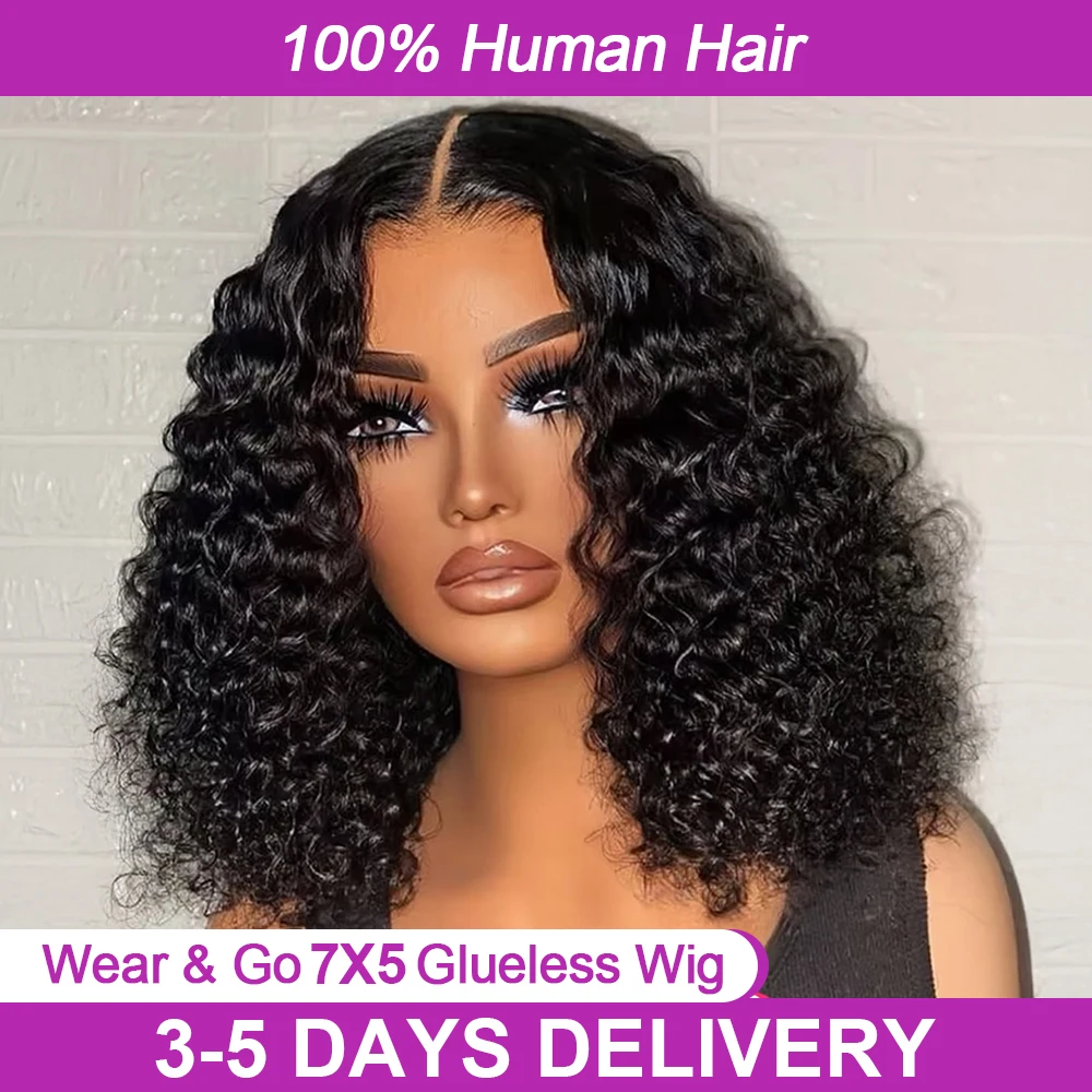 Glueless Wig Human Hair 100% Deep Wave Bob Wig 13x6 Lace Frontal Wig Wear And Go Kinky Curly Short Bob Wig for Women 250 Density
