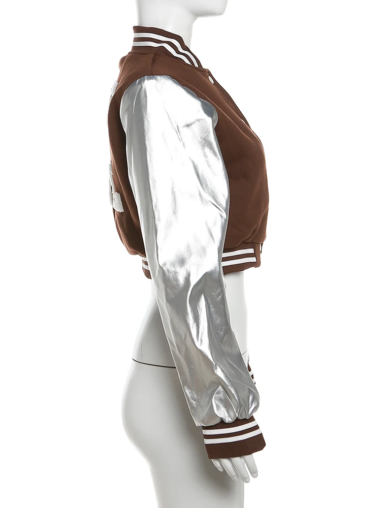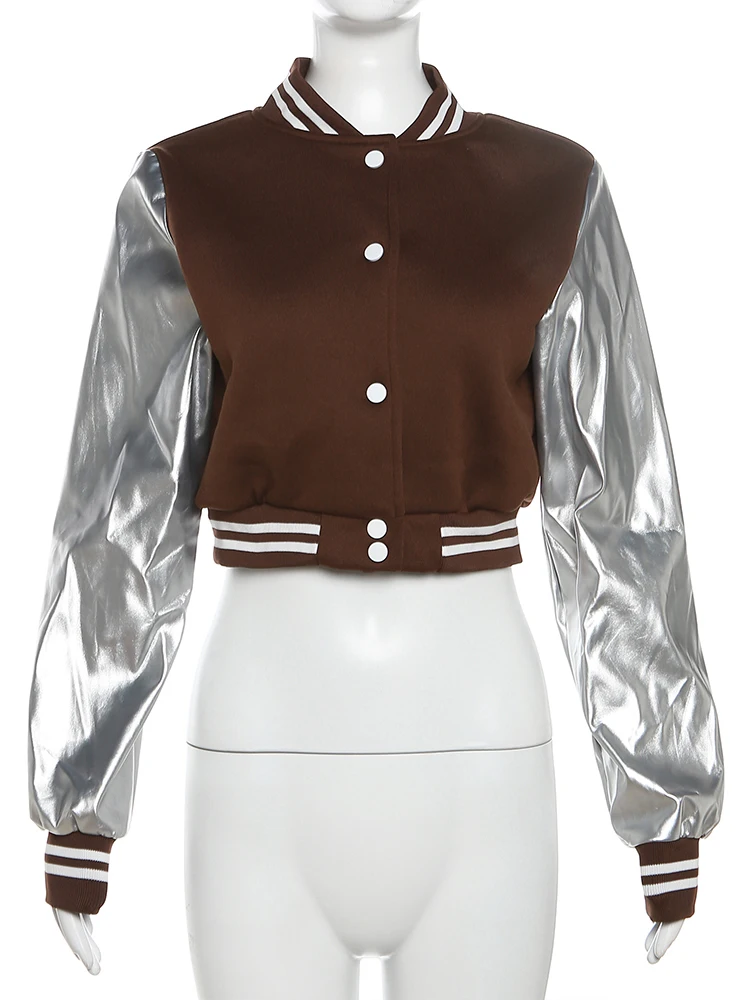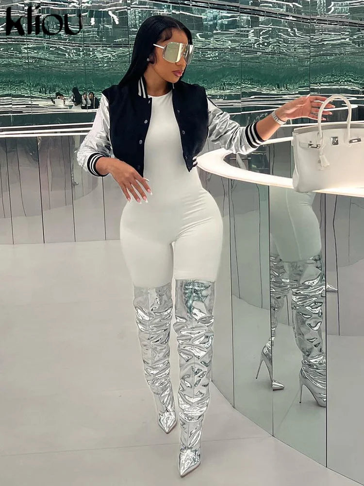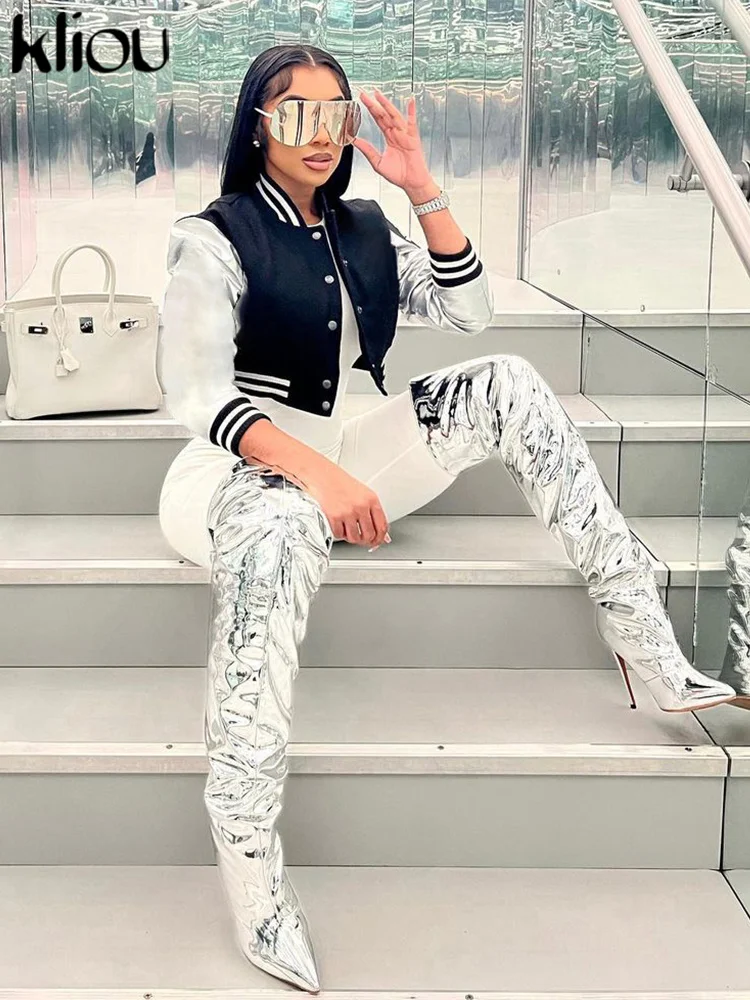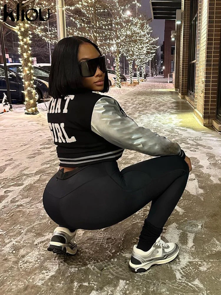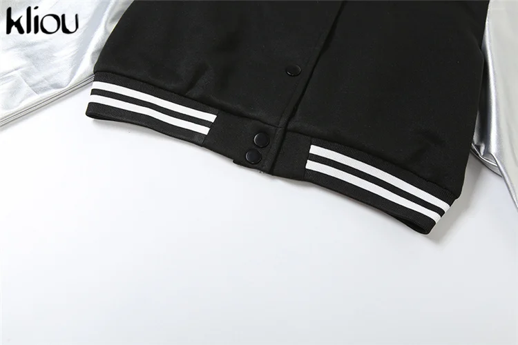 Kliou Letter Shape Patchwork Coats Women Casual Classic Panelled Long Sleeve Single Breasted Croped Jacket Female Street Outwear