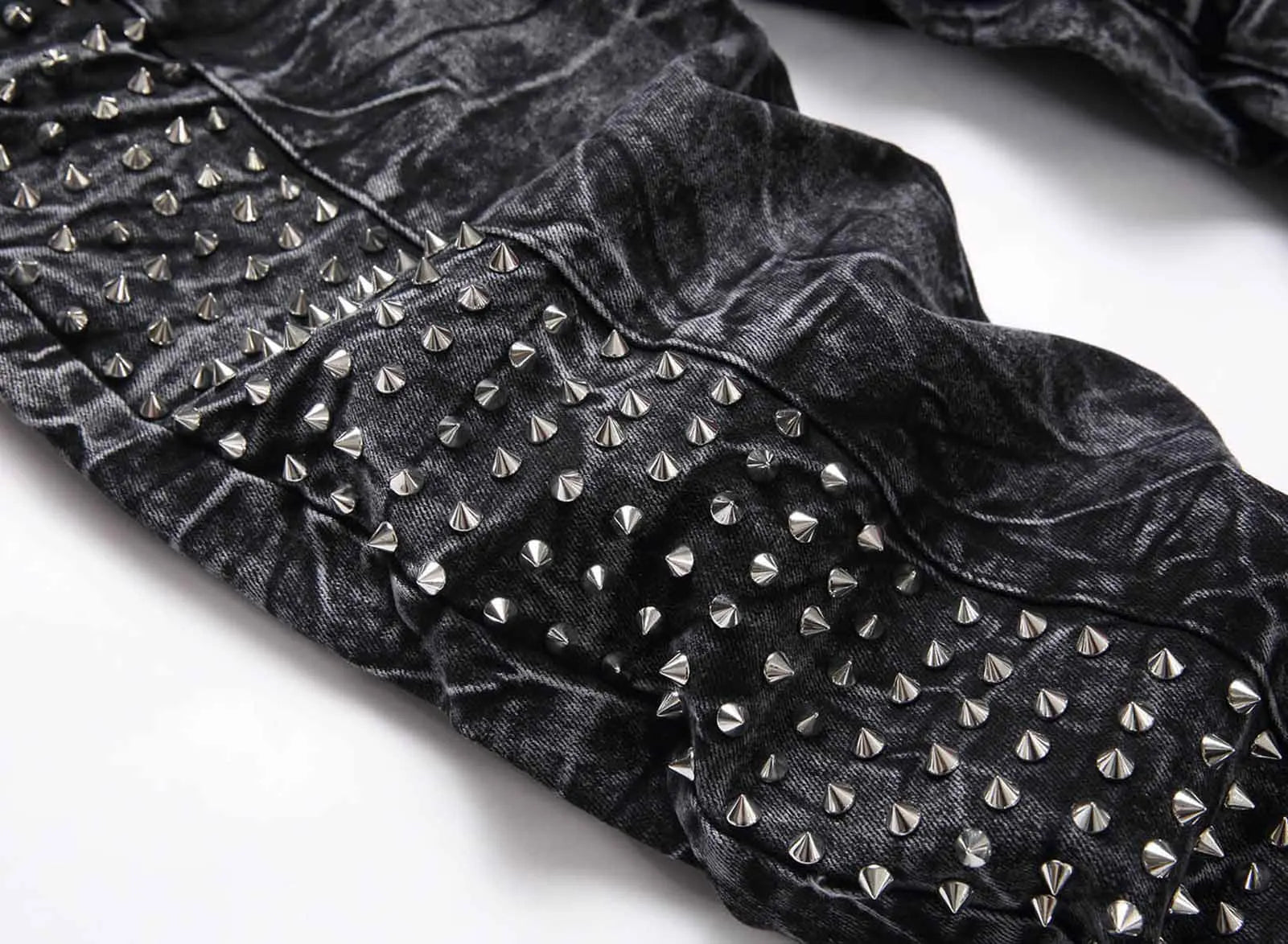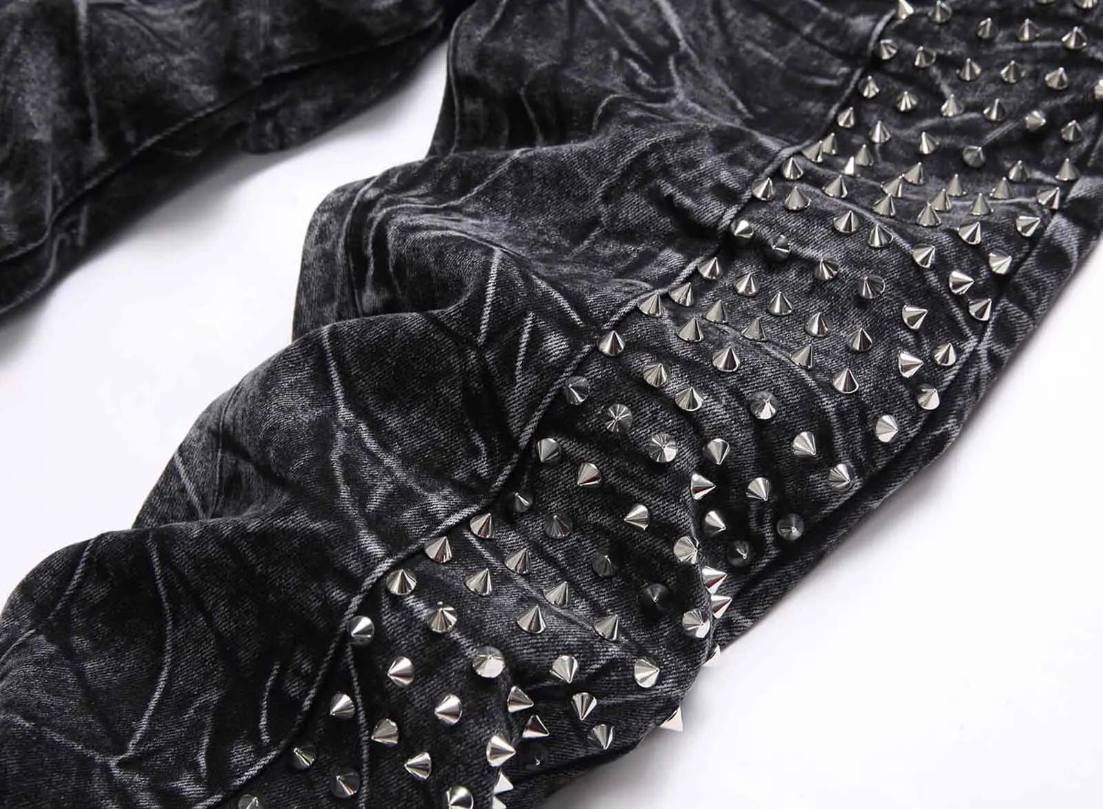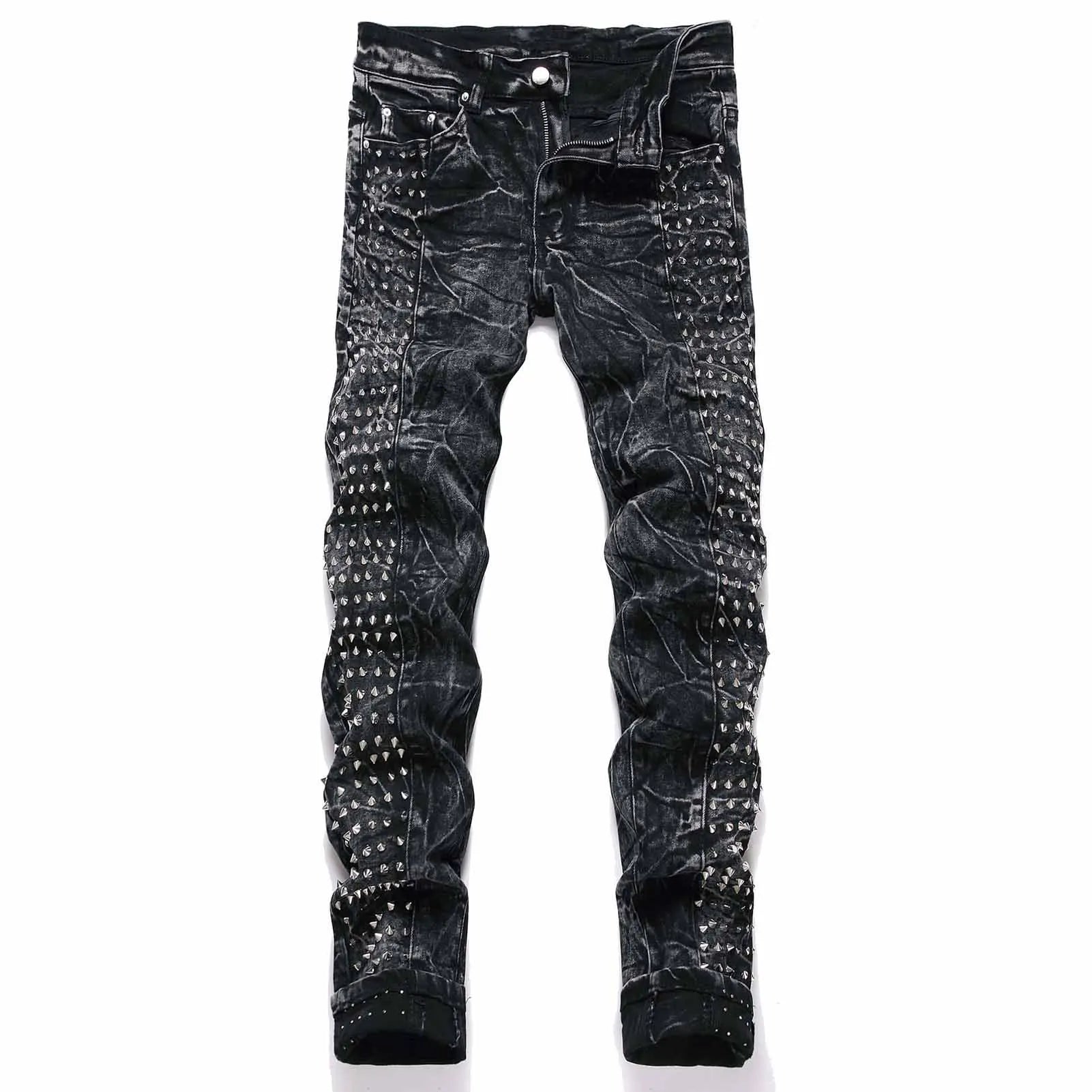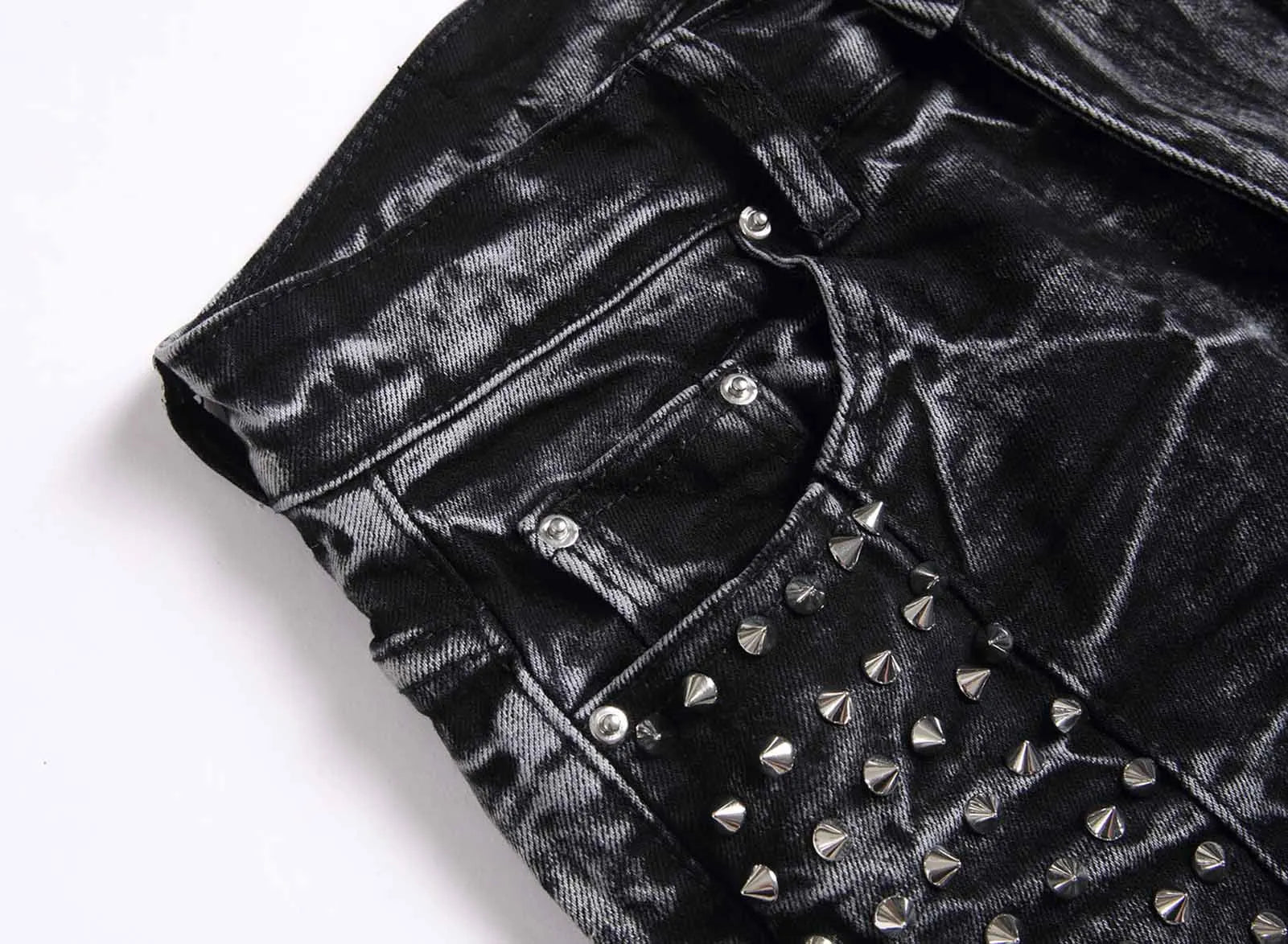Men`s Steampunk Motorcycle Retro Studded Rock Night Club Jeans Pants with Rivet Hip Hop