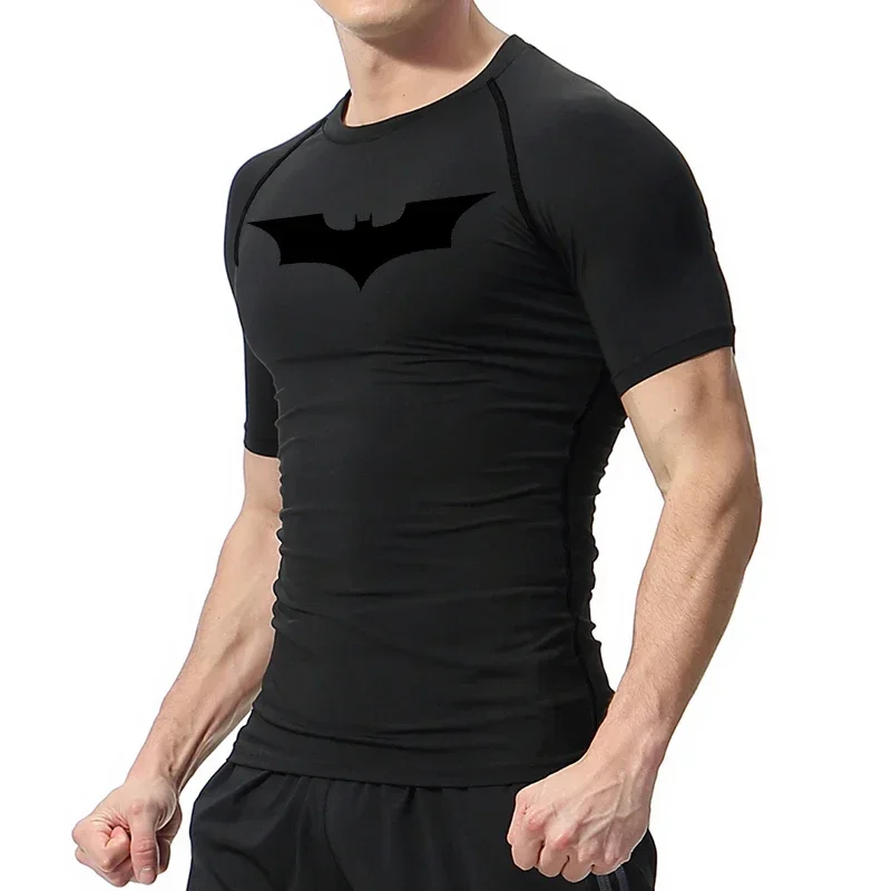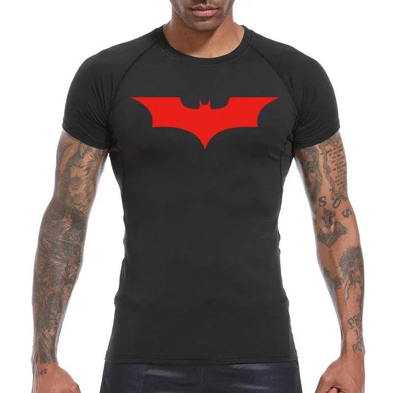Men's Bat Print Compression Shirt Summer Short Sleeve Quick Dry Rash Guard Gym Workout Running T-Shirt Athletic Tees Tops