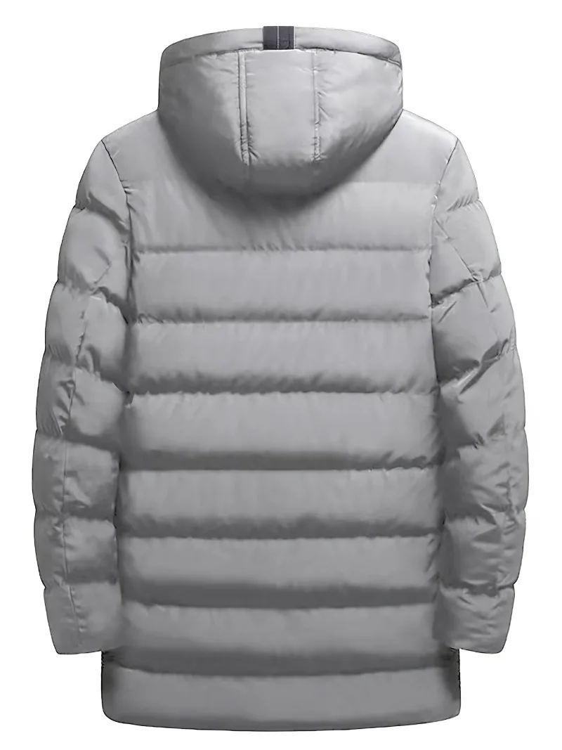 Men's Winter Hooded Full-Zip -Padded Jacket - Windproof Coat with Full-Length Zipper- Cold Weather Outdoor Clothing for Skiing