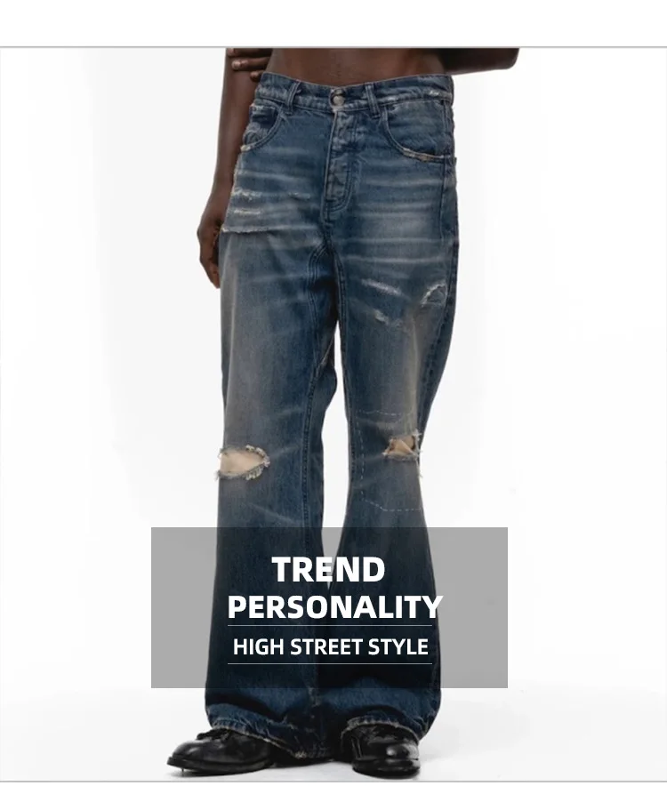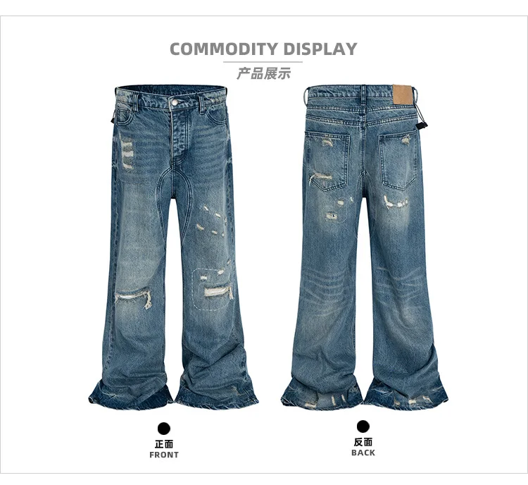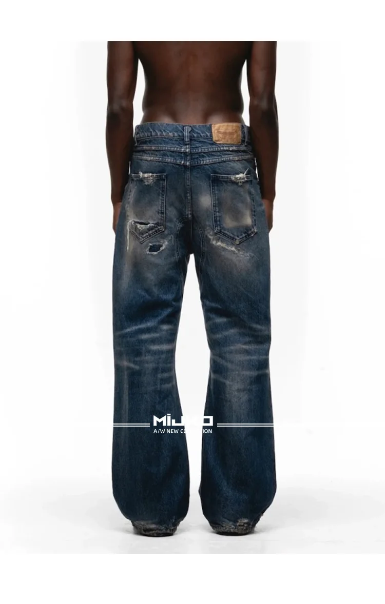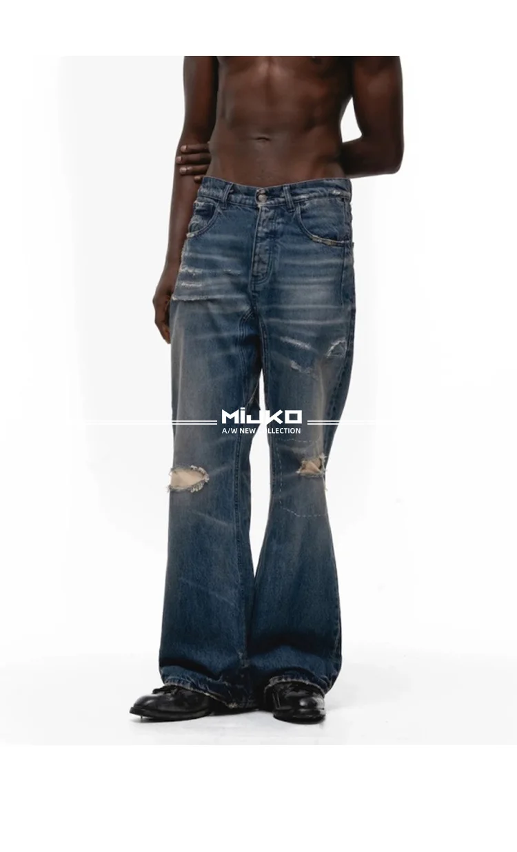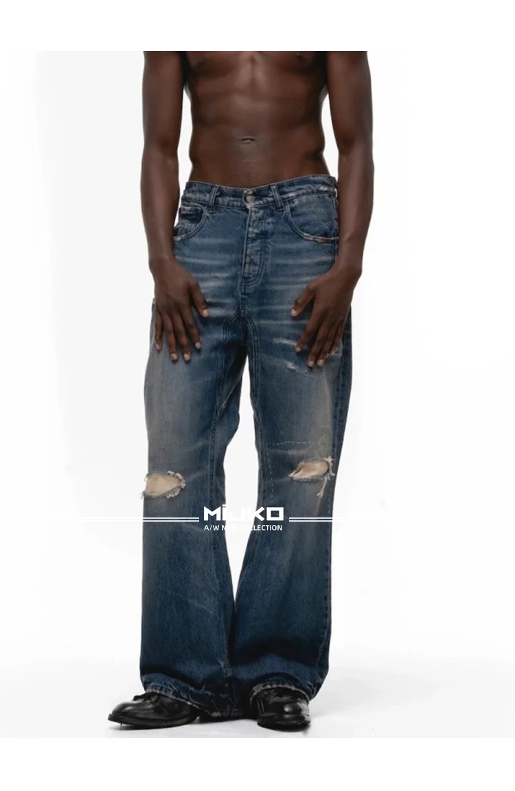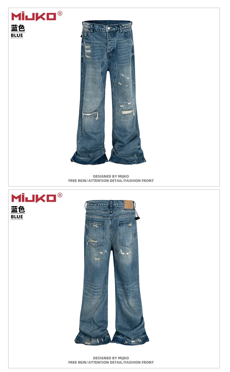 MIJKO Flare Jeans for Men And Women Washed Wide Leg Blue Trousers