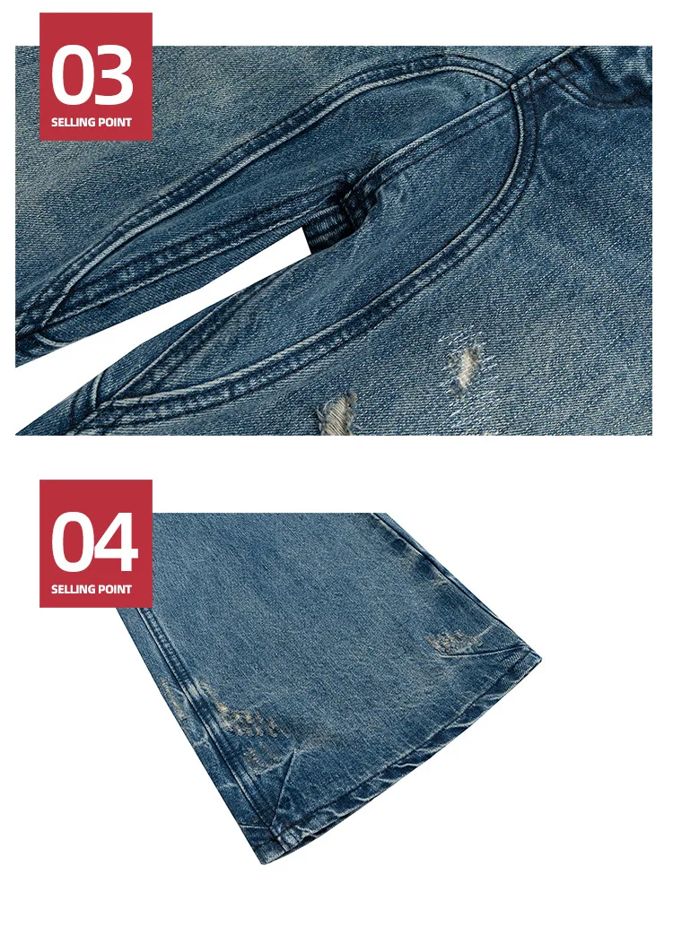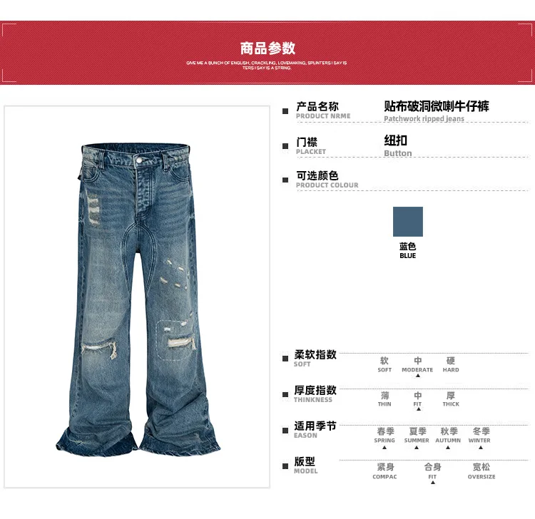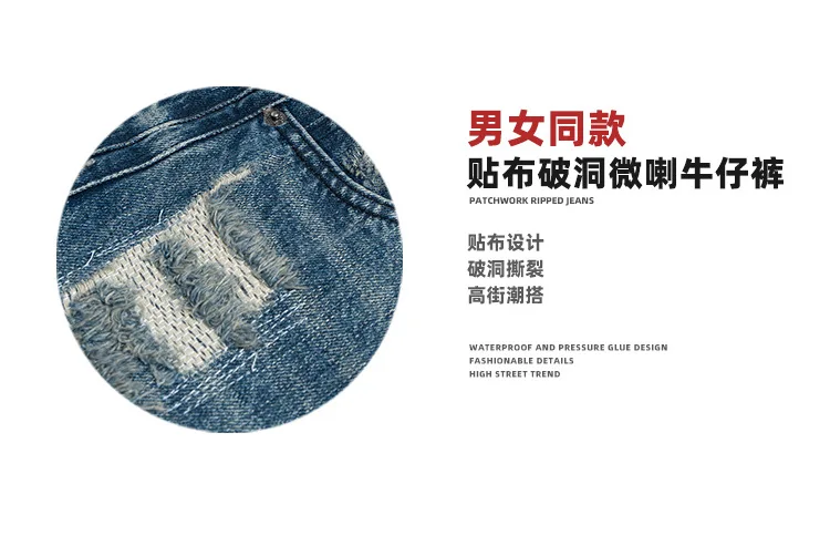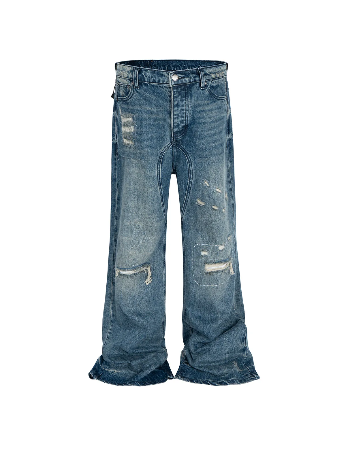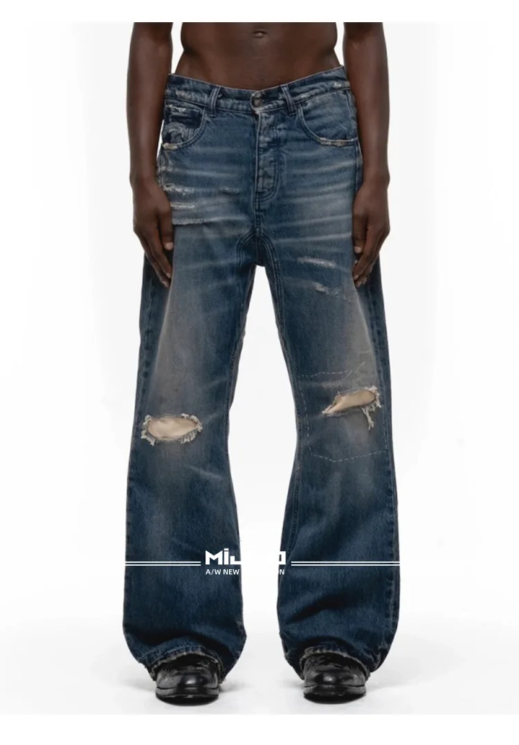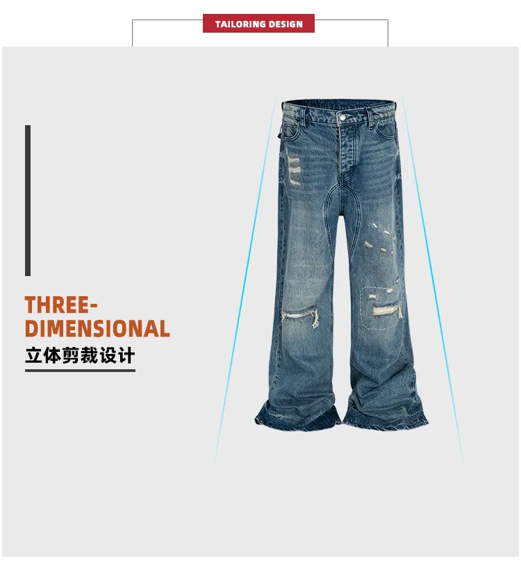 MIJKO Flare Jeans for Men And Women Washed Wide Leg Blue Trousers