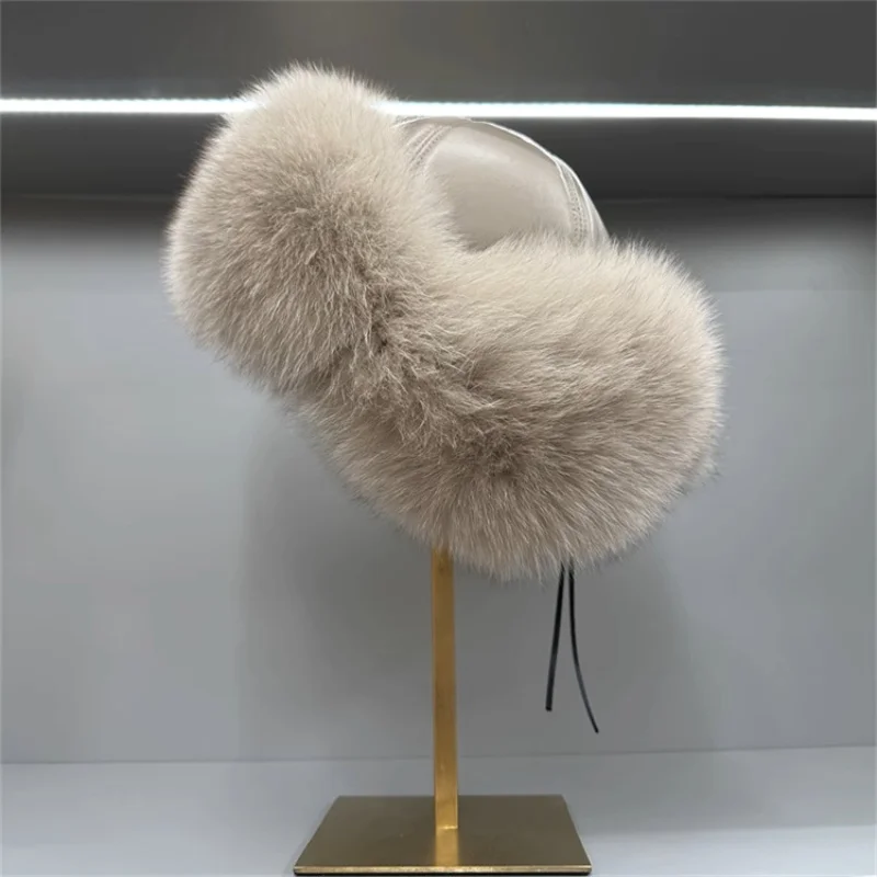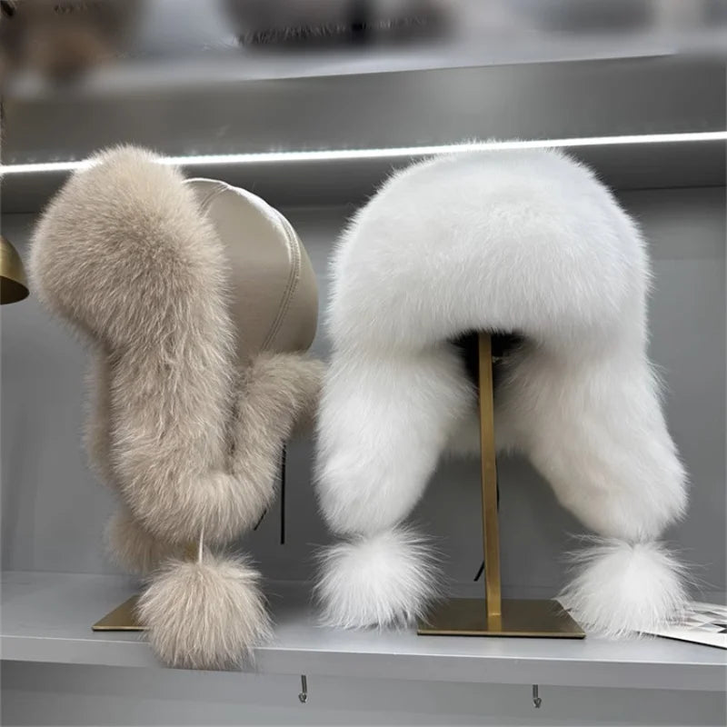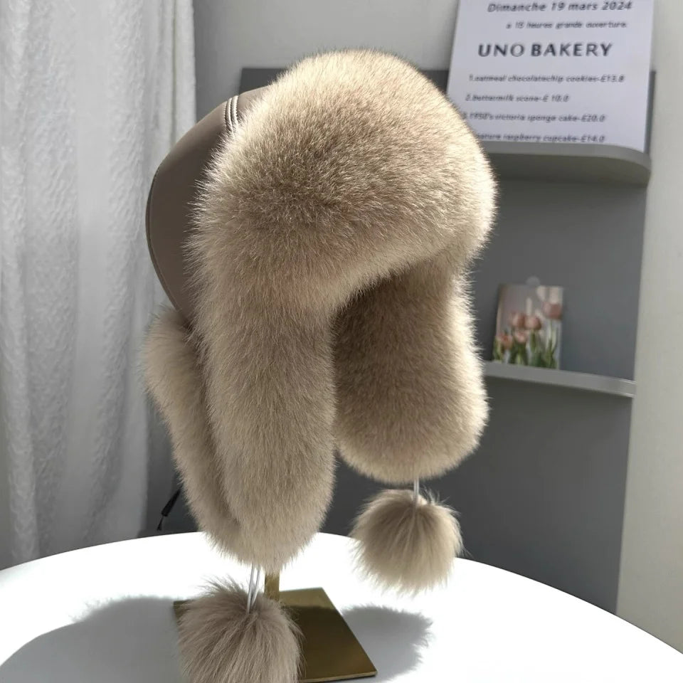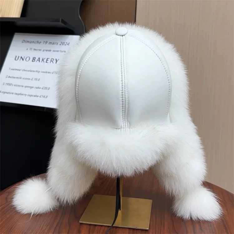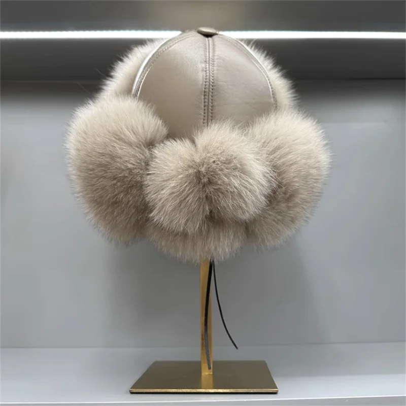 Ms.MinShu Unisex Winter Adjustable Earflap Genuine Black Fox Fur Hat with Sheep leather