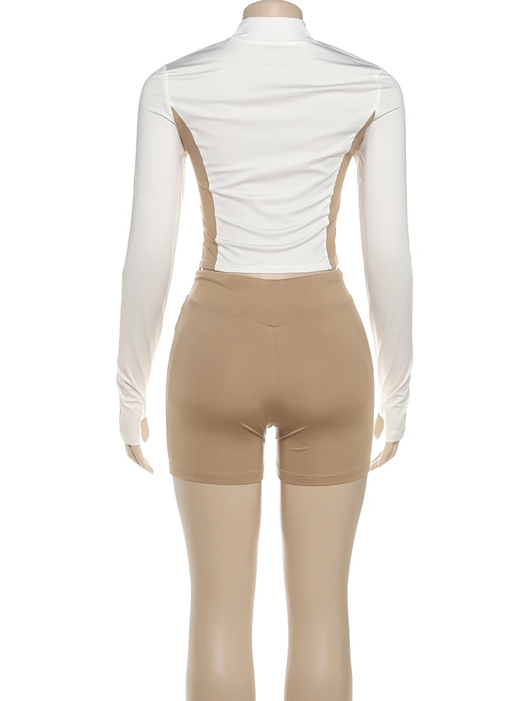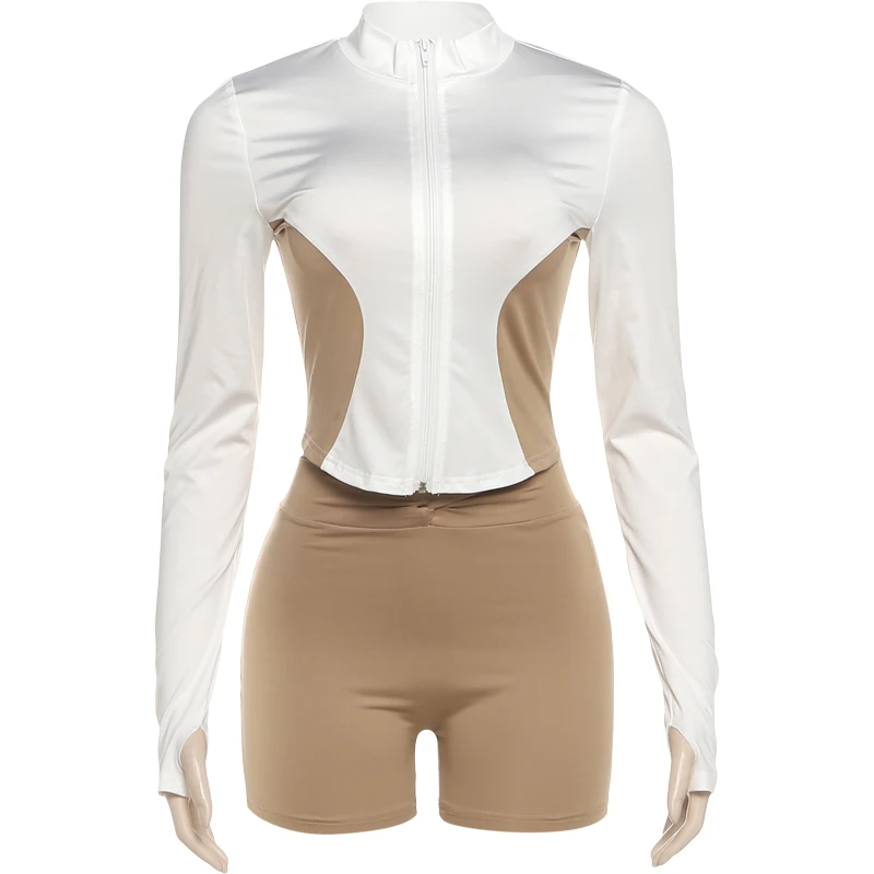 Nibber Daily Casual 2piece Set Women Tracksuit Zip Contrast Patchwork Full Sleeve Jacket+Shorts Simple Sporty Street Outfits