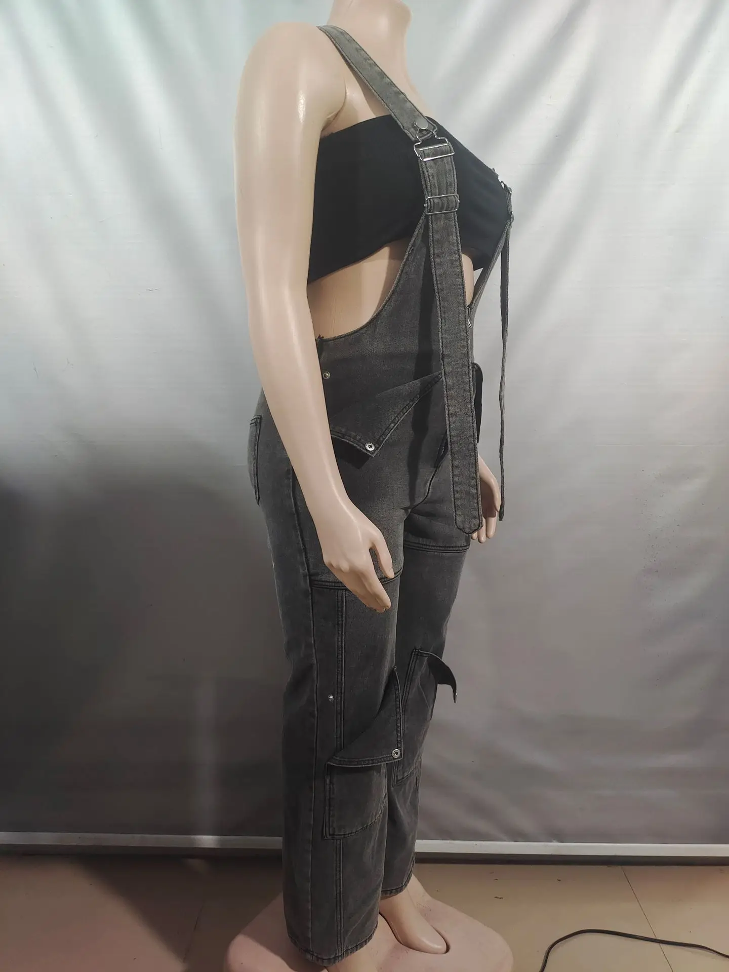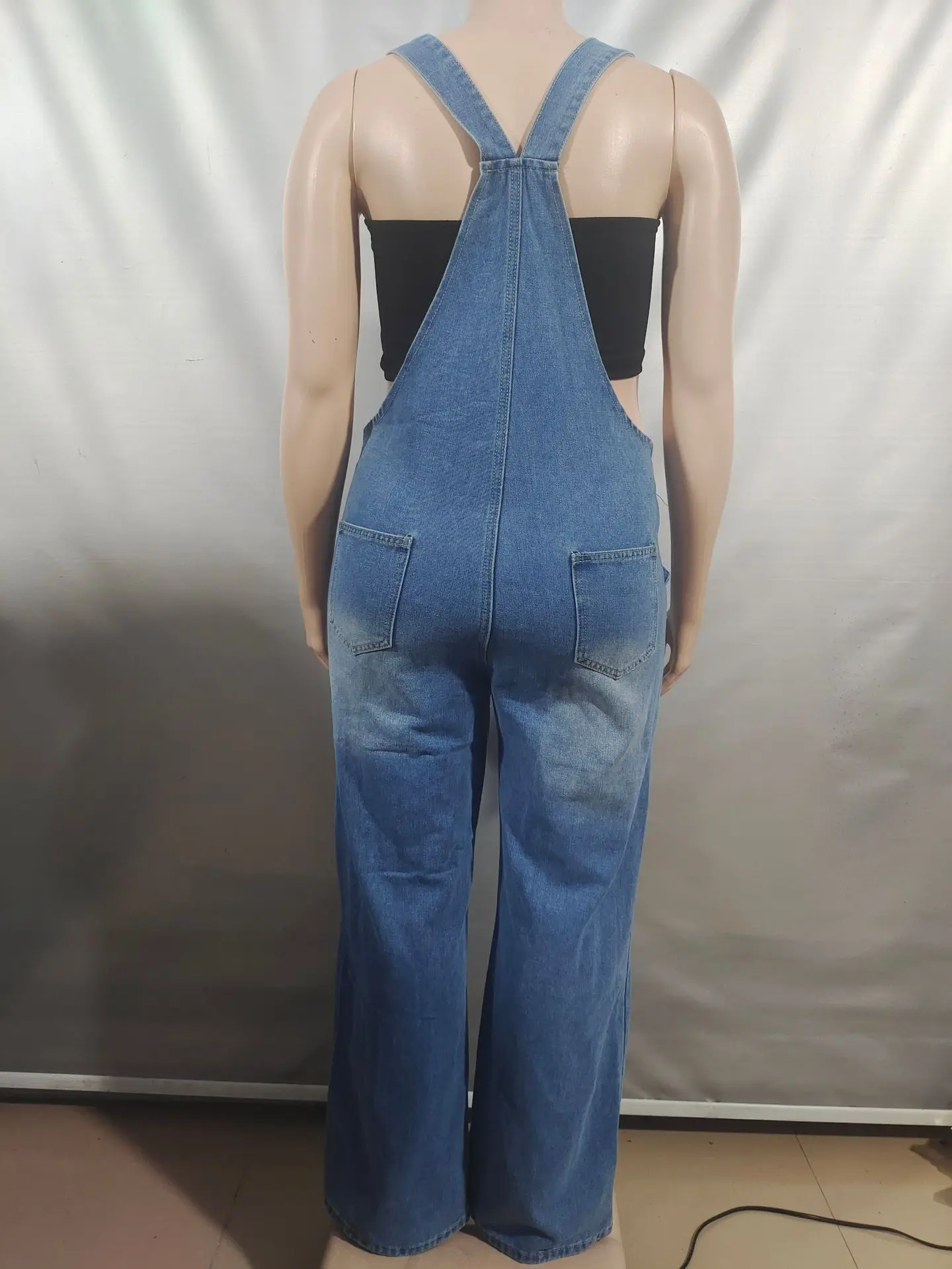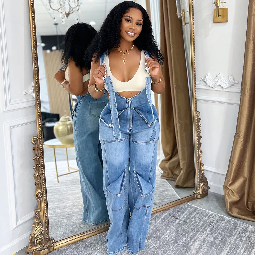 Sister Star Summer Fashion Women's Denim Backpack Pants Street Casual Zipper Washed Jumpsuit Pants Personality Street Jumpsuit