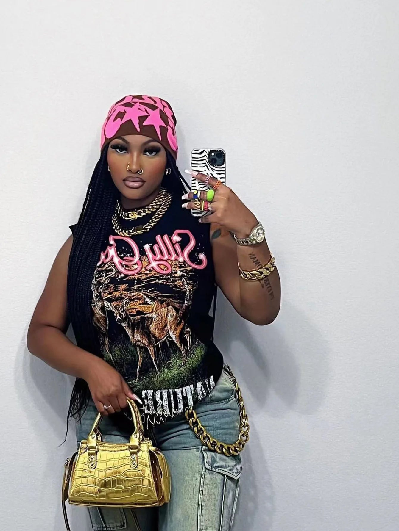 Summer Letter Print Sleeveless Punk T Shirt Y2K Streetwear For Women O-Neck Causal Loose Fit Graphics Pullover Tee