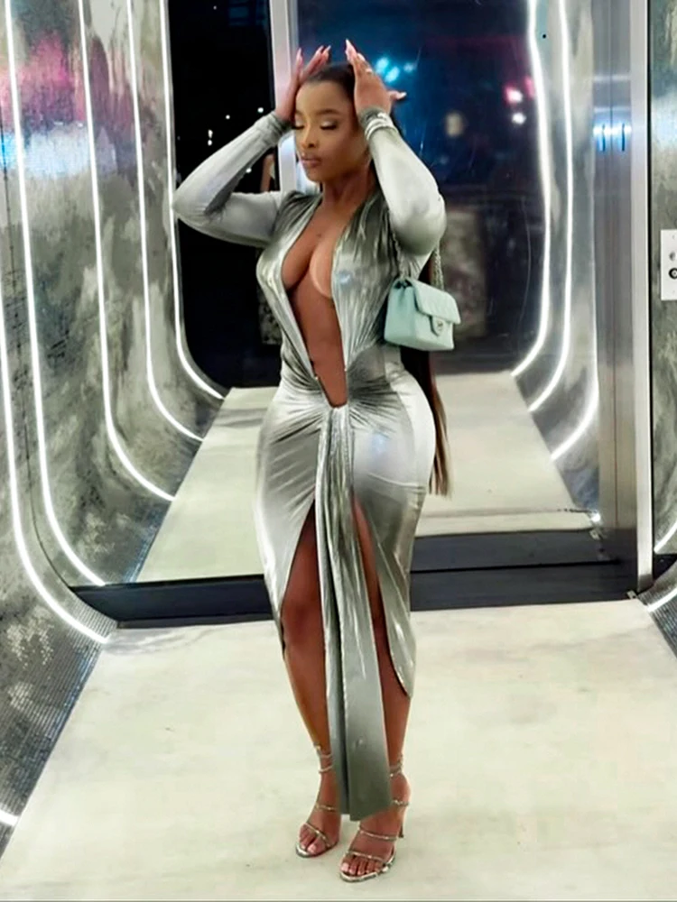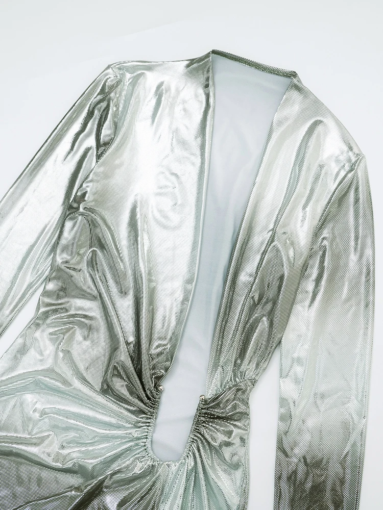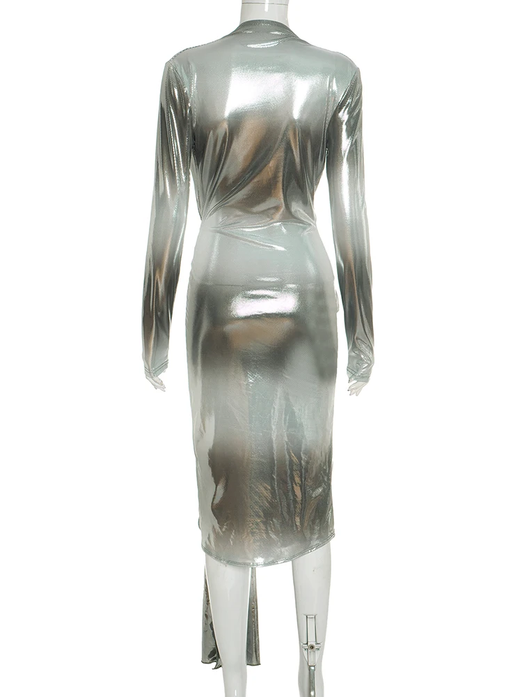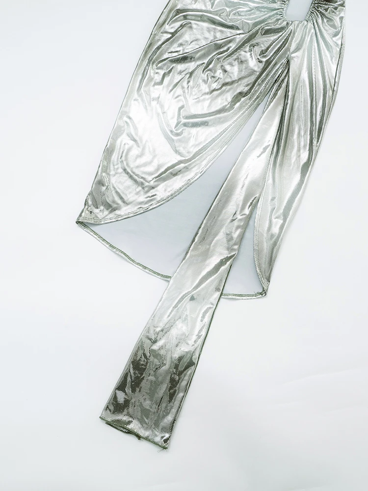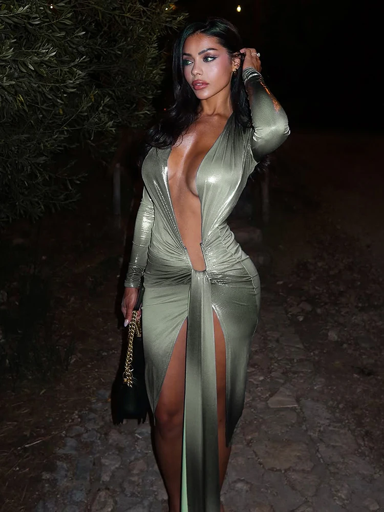 Weird Puss Sexy Silky Split Dress Women Irregular Ribbon Gradient Color Deep V-Neck Coquette Hottie Street Elegant Slim Bodycon