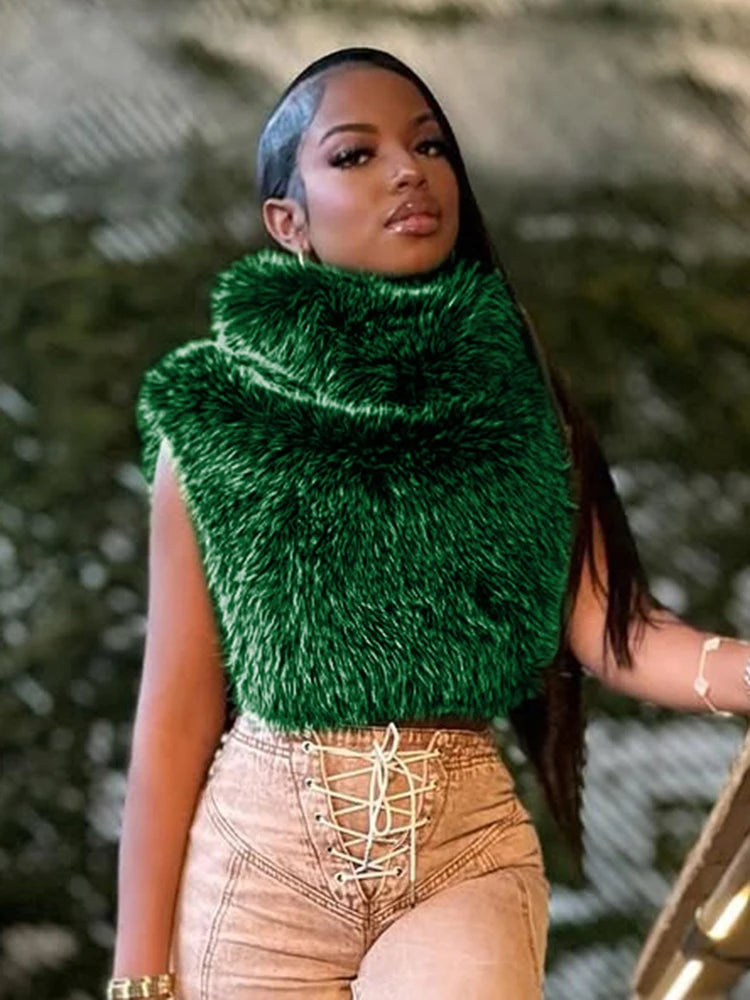 Weird Puss Turtleneck Furry Tank Tops Women Y2K Sexy Side Split Chic Fall Trend Midnight Basic Street Furs Hipster Clubwear Vest