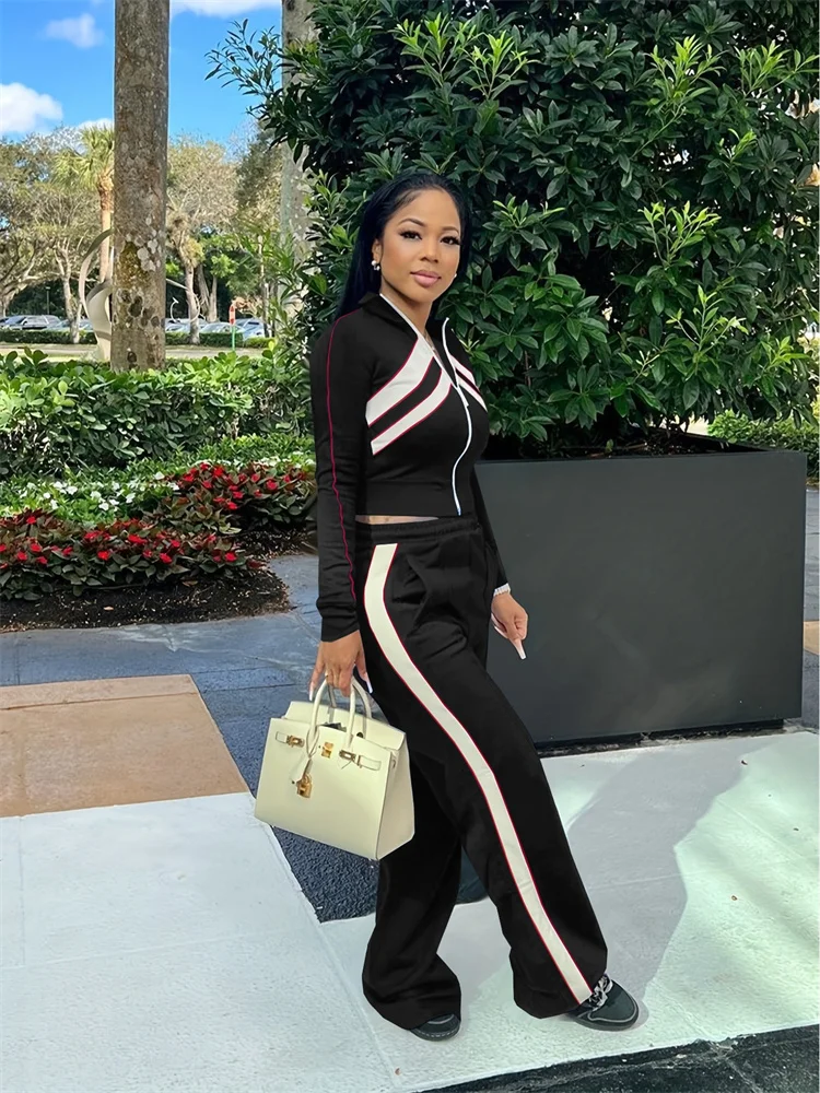 Wmstar Two Piece Set Women Pants Sets Casual Top Loose Stretch Zipper Long Sleeve Fall Clothes New Style Wholesale Dropshipping