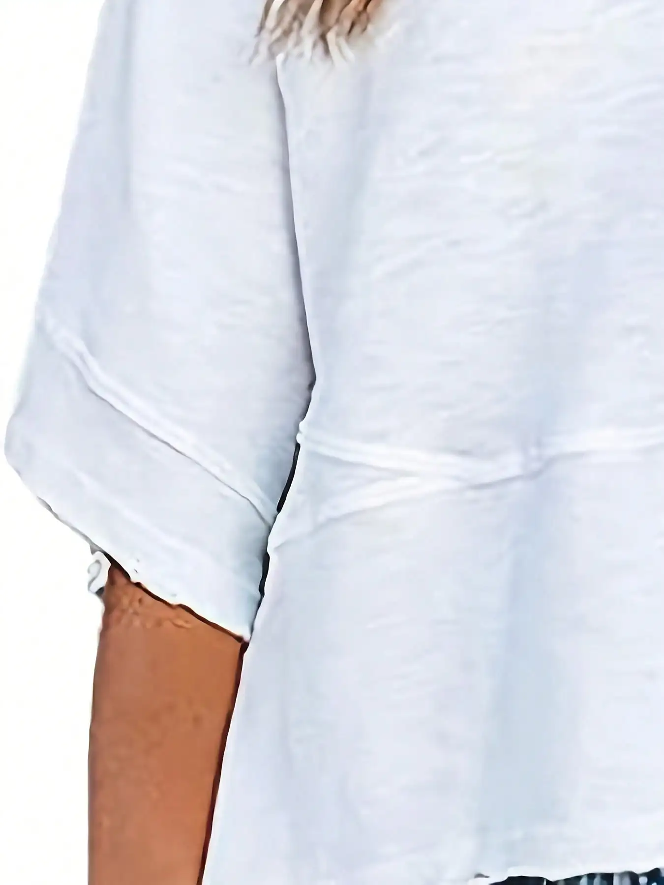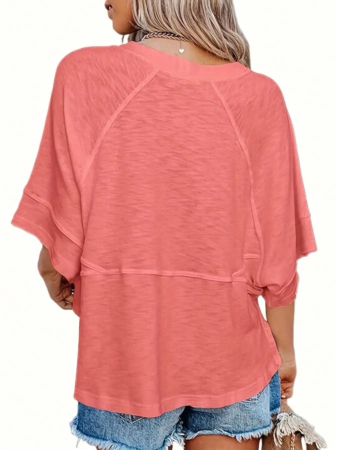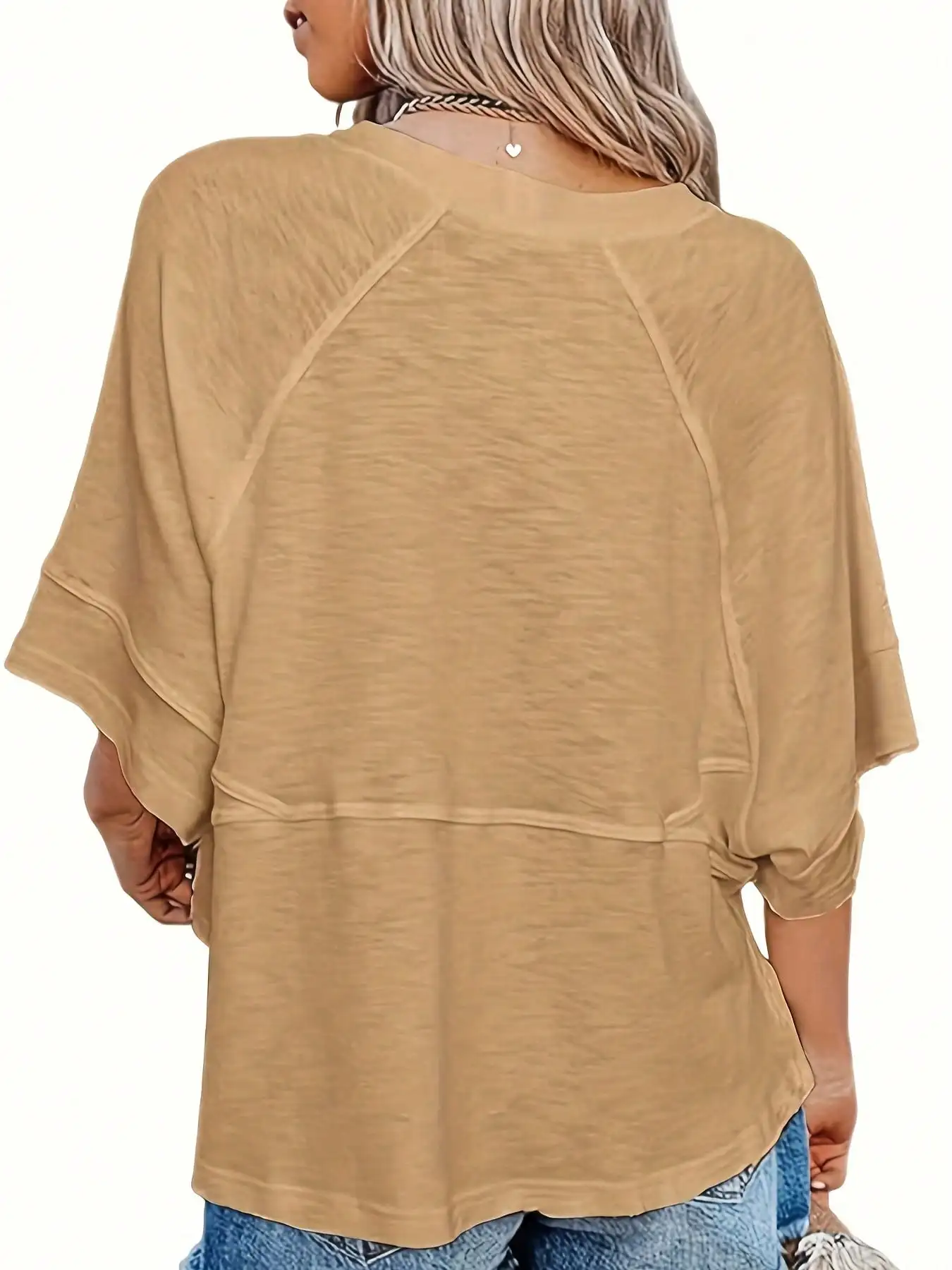Women’s top dressy casual, women’s 3/4 sleeve blouse, chiffon blouse, summer t shirts, round neck, basic tees, plain color, cute tops, loose fit, lightweight, off the shoulder tops, batwing tops for women